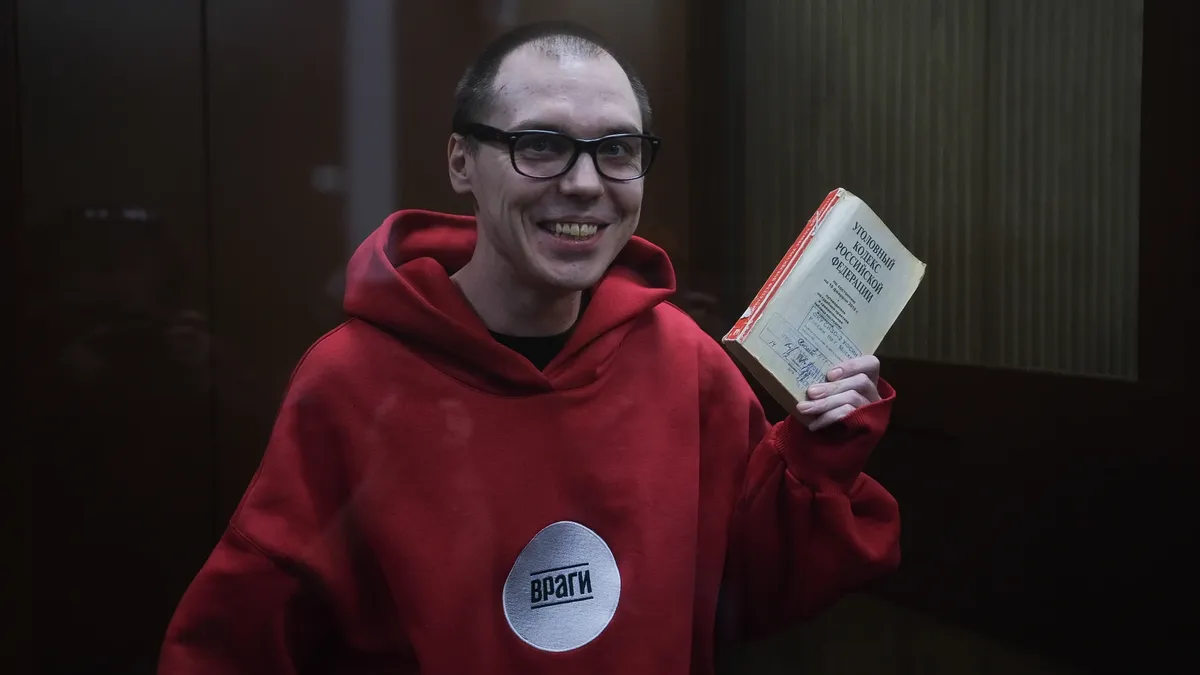 — Нам докинули совсем свежую статью, — рассказывает Камардин в майке «Враги», повторяющей обложку книги его сборника поэзии. — Я запросил в библиотеке СИЗО актуальную версию УК, чтобы почитать про данную статью, про этот подарок от «бешеного принтера». И мне вот такое выдали за 19-й год (показывает потрепанный кодекс так, что хочется его купить). Там, естественно, ее нет. А книжки с воли нам перестали почему-то передавать.