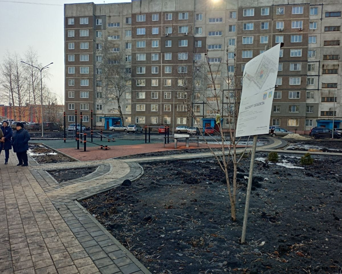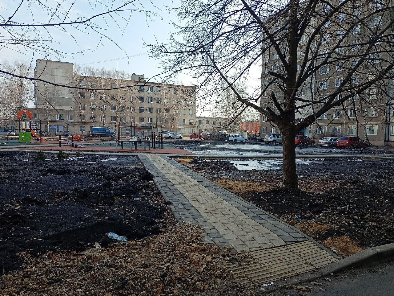 До «благоустройства» во дворе была хорошая детская площадка, большой участок нового асфальта, деревья. Когда начались работы, у жителей стали возникать вопросы. Приезжал глава администрации города Максим Косенков и другие представители городской администрации, рассказывая жителям, как будет хорошо. Но красивые обещания так и остались словами.