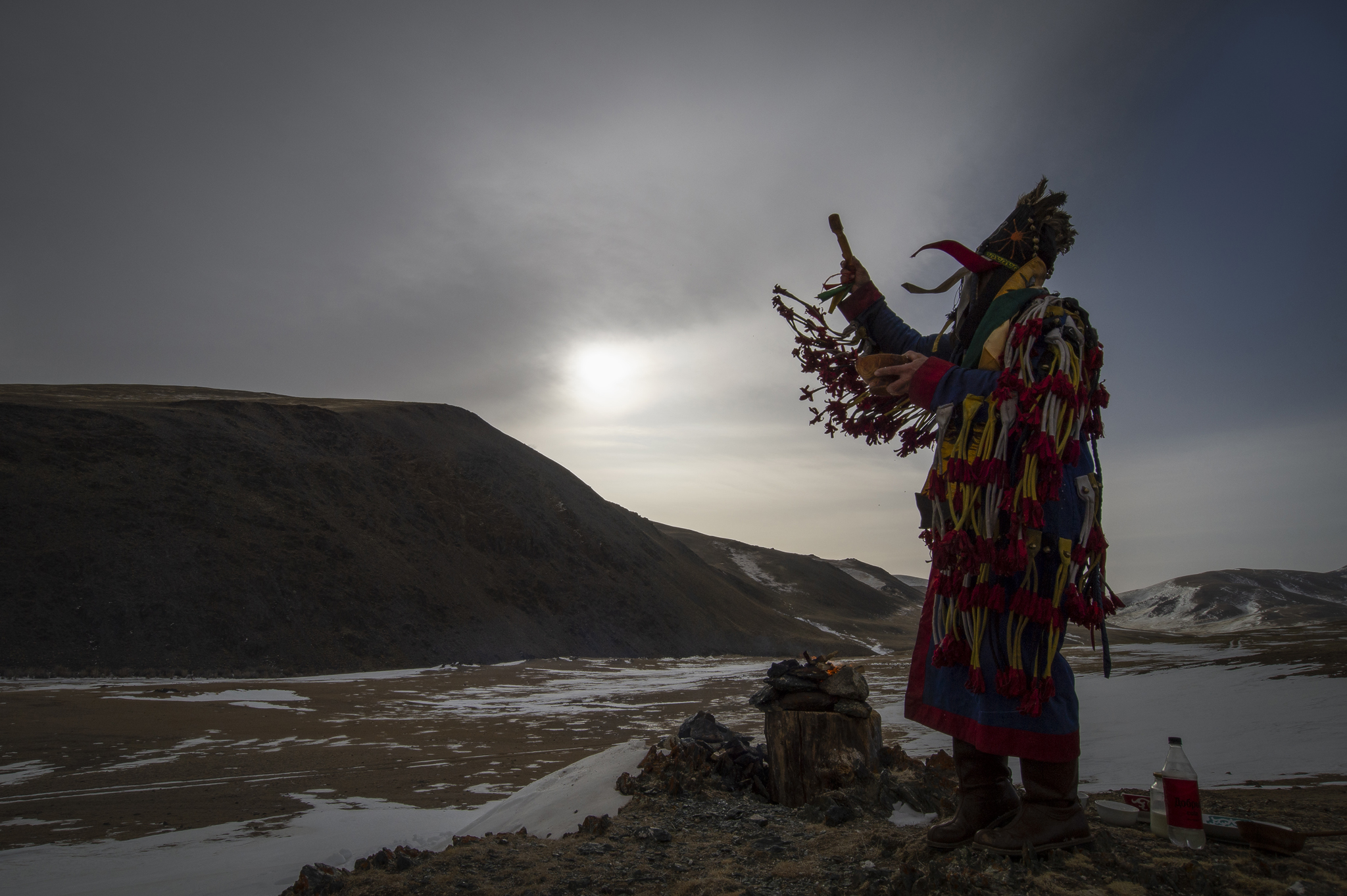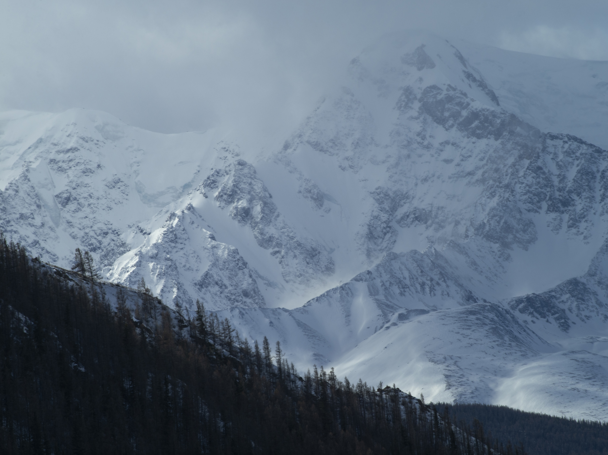 Пружиня на мягких лапах, покачивая огромным загнутым вверх хвостом, грациозный, красивый, пушистый — загадочный дух Алтайских гор явился нам. Снизошел. И лег за камнем, спрятался от ветра — ему тоже не нравится такая погода, хотя он и привык.