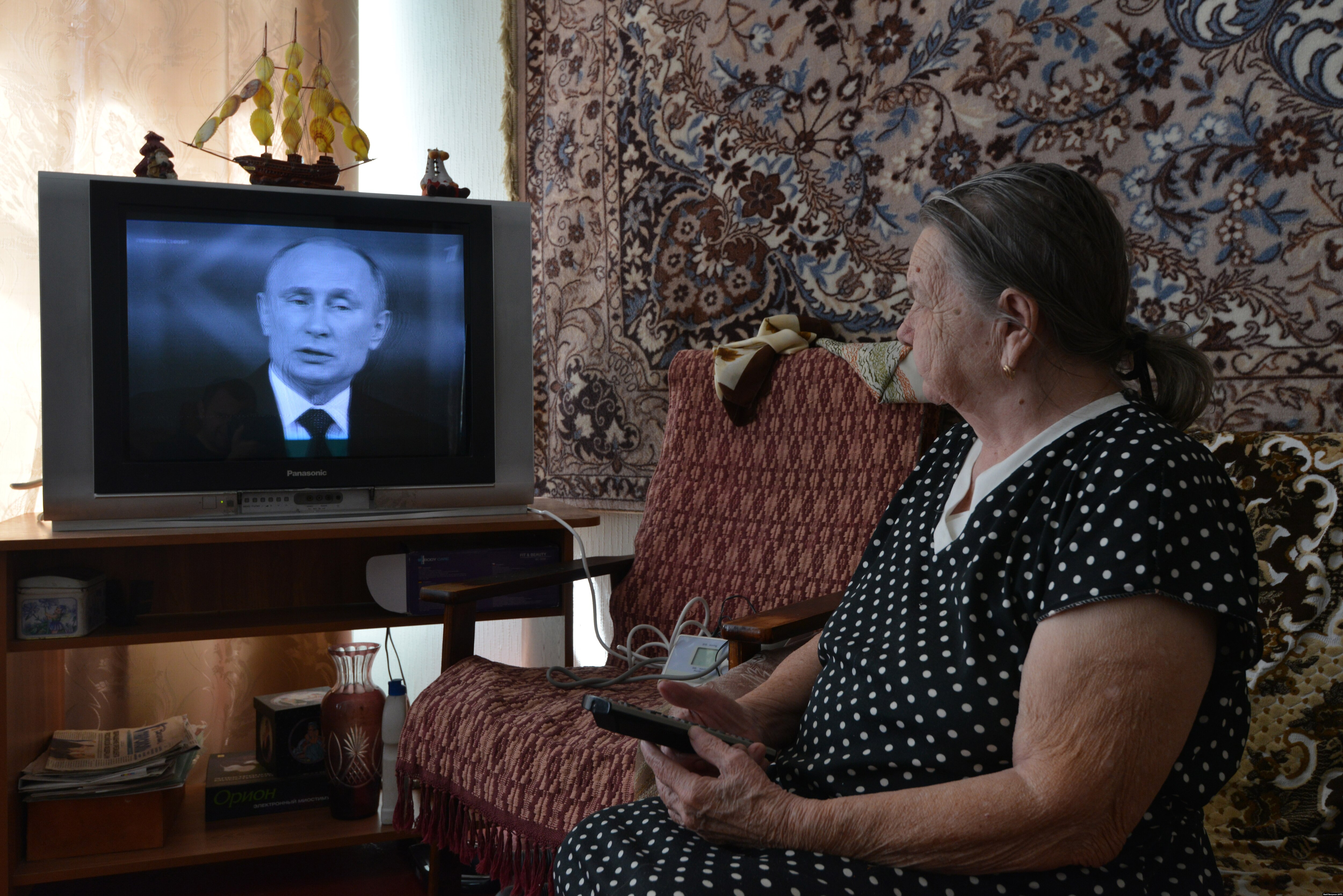 С родителями мужа тоже беда. Они пенсионеры, делать им нечего, и почти все время они смотрят телевизор. К сожалению, когда началась война, мы не догадались провести им кабельное телевидение, и они довольствовались центральным.
