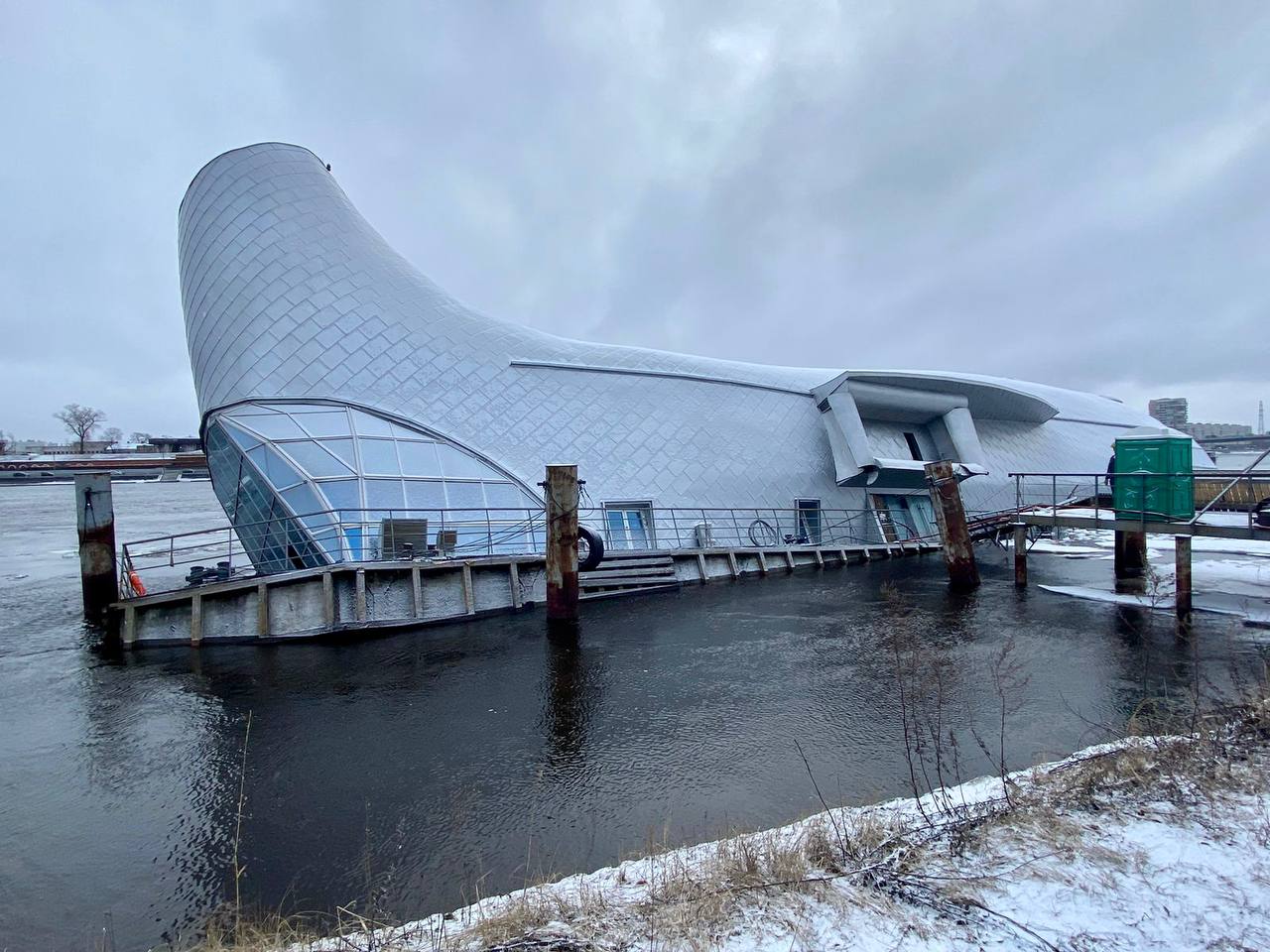 Затонувший ресторан находится на Неве на проспекте Обуховской Обороны. По данным прокуратуры, сотрудники которой проводят проверку, "кит" частично ушел под воду из-за повреждений понтона в результате "ледовой обстановки".