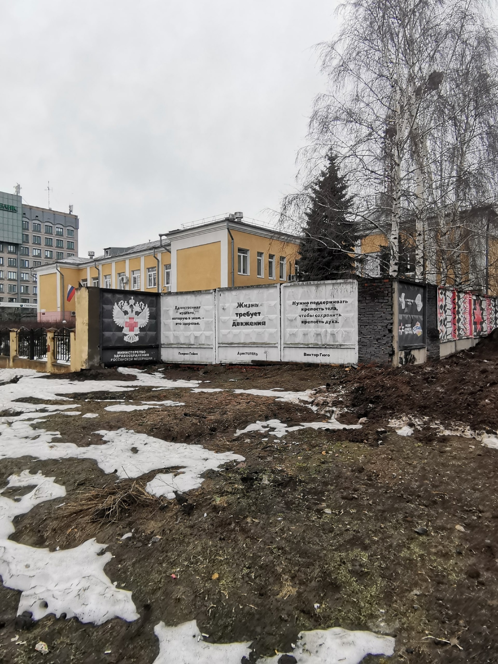 Пока как-то так. На фото - здание Минздрава Удмуртии на фоне мрачных серых плит. Которое тоже, кстати, не соответствует Порядку и санитарным нормам.