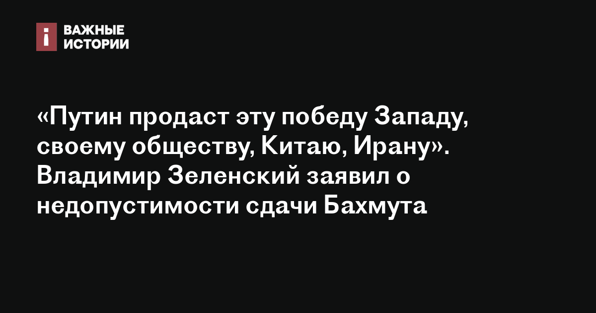 «Если российским войскам удастся взять Бахмут, Владимир Путин продаст эту победу Западу, своему обществу, Китаю, Ирану. (...) Если он почувствует кровь — почувствует, что мы слабые, — он будет давить, давить, давить», — сказал Зеленский в разговоре с АР.