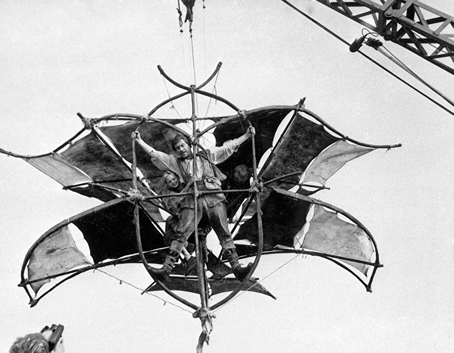 Полет — как парение человеческого духа. Поэтому летательный аппарат Орландо Андрея Миронова, созданный из его старого плаща, напоминал крылья Леонардо да Винчи.