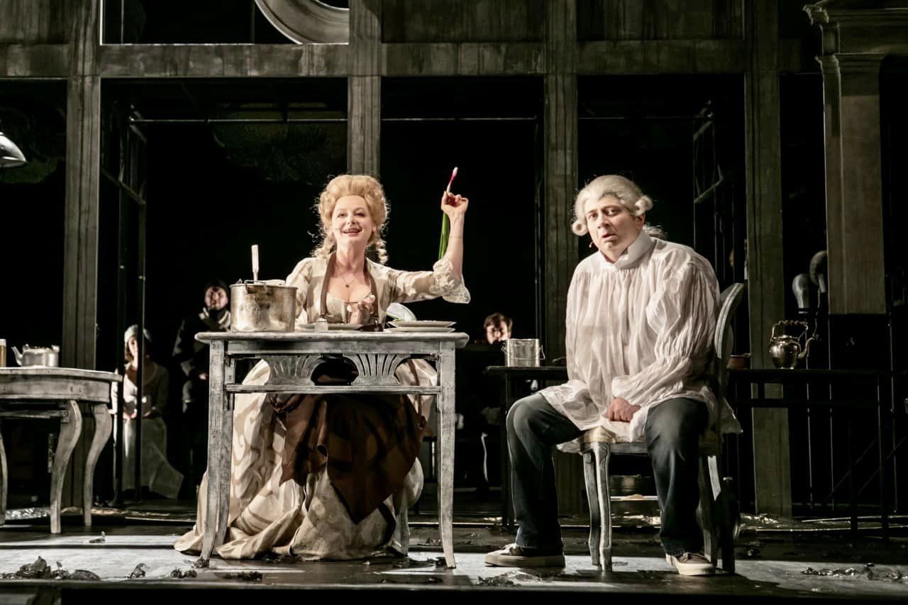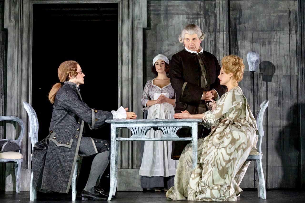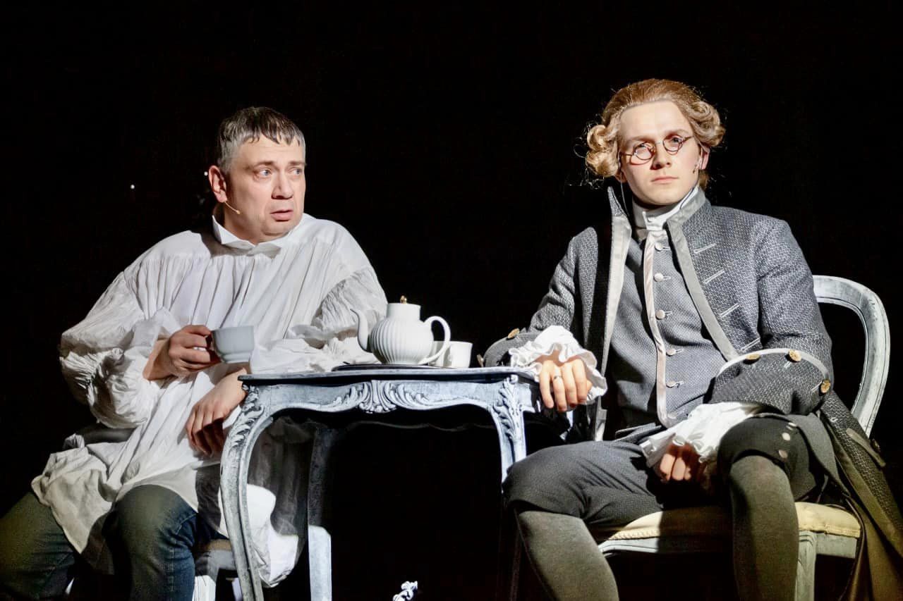 – Это XVIII век, великий английский писатель Лоренс Стерн, его роман не привязан к политической повестке ни XVIII века, никакого другого – это чистая большая литература, Боря делал спектакль, не притягивая его ни к каким определенным реалиям – просто наслаждался умной, философской, очень ироничной прозой, при этом он смог виртуозно перевести ее на современный театральный язык, сохраняя стилистику романа, он работал, не глядя в окно. Главный герой, Тристрам Шенди в романе достигает возраста только пяти лет, там все окружено парадоксами, историями членов семьи, политики там нет никакой, и Боря никогда не идет поперек автора, просто говорит современным языком, не переворачивая, не ломая и не перешивая сюжет. Как большой художник он говорит еще и от себя и про себя – но только через автора. Этот спектакль полон любви к большой литературе, театру, актерам, которые вместе с ним выразили главные темы романа.