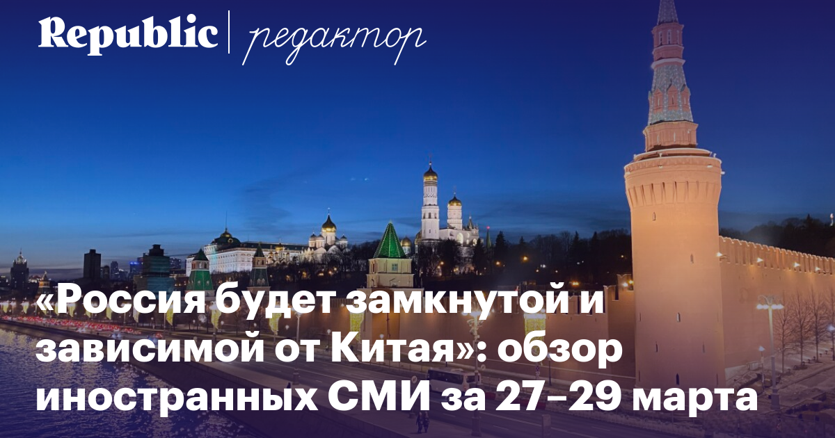 «Долгосрочная картина выглядит мрачно: Москва будет гораздо более замкнутой и чрезмерно зависимой от Китая». Россия на страницах западных СМИ: обзор прессы 27–29 марта