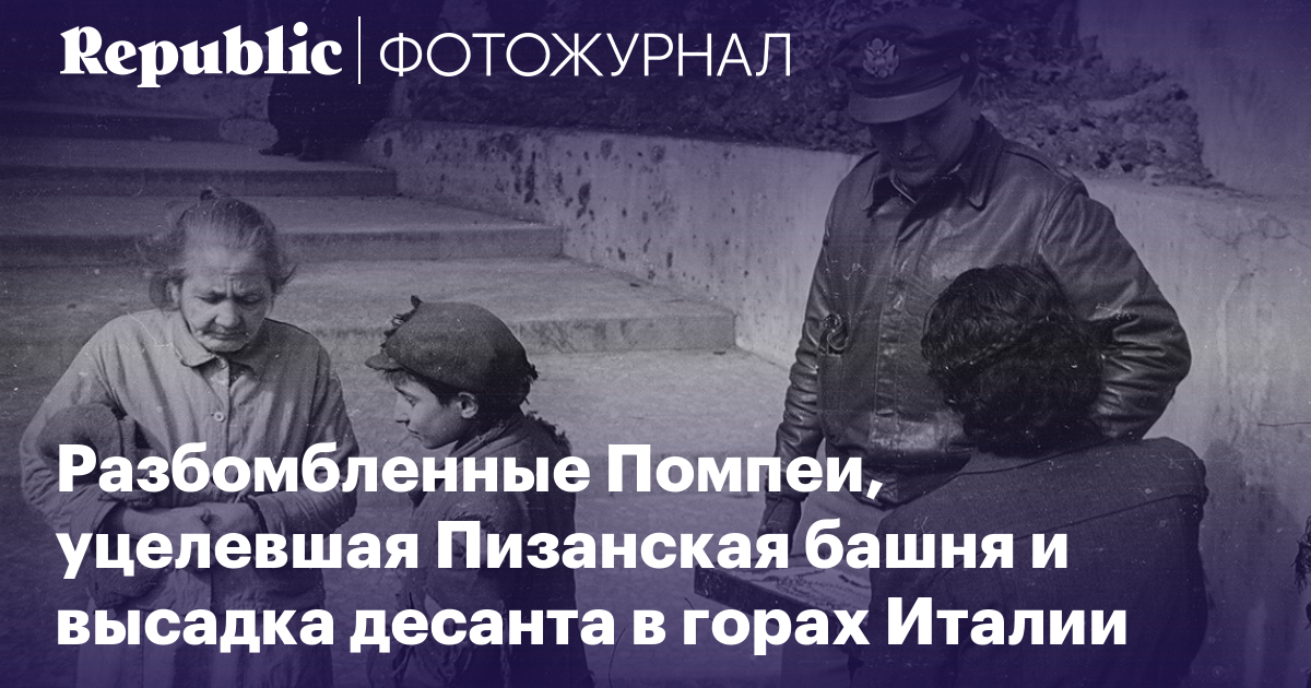 Разбомбленные Помпеи, уцелевшая Пизанская башня и высадка воздушного десанта в горах Италии на неизвестных негативах американского фотографа 1944–45 годов