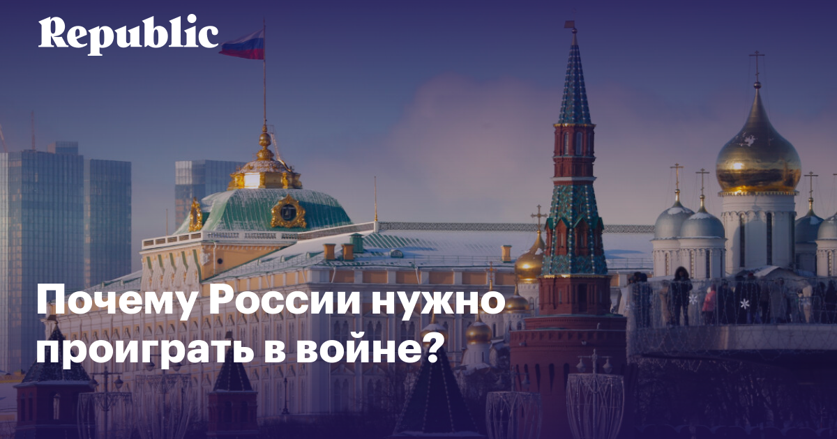 В свете грядущего крупного украинского контрнаступления, которое вполне может оказаться успешным и еще больше приблизит конец войны, в обществе стали активнее обсуждать, почему и ради чего Россия должна проиграть в этом конфликте. Этому способствуют упаднические настроения в элите, как показал слитый в интернет разговор, предположительно, между продюсером Иосифом Пригожиным и олигархом Фархадом Ахмедовым, а также признаки того, что даже российская пропаганда достигла стадии торга — в частности, Маргарита Симоньян предложила обменять арестованные за рубежом активы РФ на украинские территории, хотя еще недавно о подобных «репарациях» даже заикаться было нельзя. Что думают о необходимости поражения России в войне историки, писатели, политологи, экономисты и журналисты — в обзоре мнений от Republic.