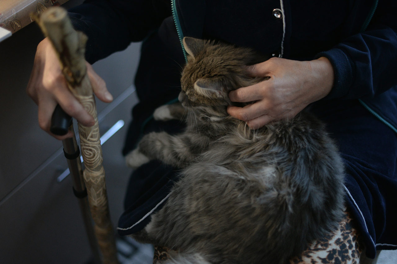 Ольга Александровна всегда носит с собой две трости — неудобную медицинскую и сделанную вручную из ветки дерева. С одной ей тяжело держать равновесие. На коленях у героини кот ВасенькаФото: Дарья Пянзина для ТД «Увидят — скажут, Баба-яга, — посмеивается Ольга Александровна. — Зато с ней я чувствую связь с землей, энергию природы, можно сказать. Она живая, не то что эта, железная».