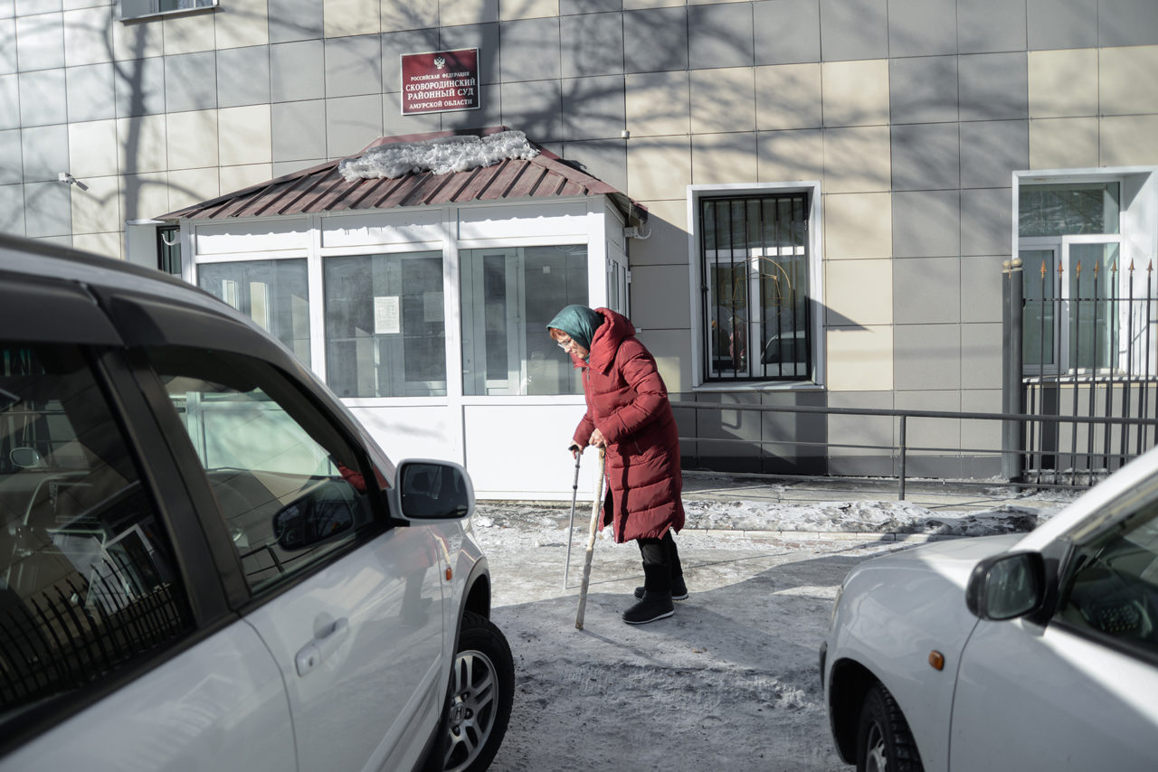 Ольга Александровна у здания Сковородинского районного судаФото: Дарья Пянзина для ТД Сам Сергей в телефонном разговоре говорит, что уехал из Благовещенска в Новосибирск по двум причинам. Первая — оформить над мамой патронаж. Надеялся, что так сможет доказать, что мать нуждается в его уходе. Вторая — узнать, где матери можно сделать сложную операцию: эндопротезирование. «Я подумал, что надо что-то предпринять. Пока у меня мать не оказалась в инвалидном кресле, — говорит Сергей. — Хотел собрать документы и уже по всей этой форме показать, что мать болеет и жить одна она не сможет. Я не думал прятаться. Я хотел приехать, показать, идти в суд».