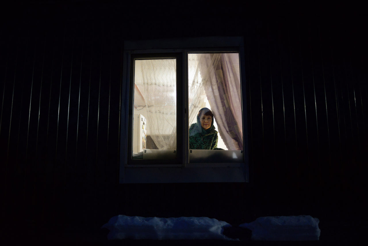 Вид из окна Ольги Александровны. В центре кадра — гостиница, освещением которой занимался СергейФото: Дарья Пянзина для ТД Как назло этой зимой в Соловьевске температура ночью падала до минус 46, это означает постоянные перебои со светом и теплом. Ольга Александровна в квартире не снимала шубу и сапоги, но и это не спасало. По утрам казалось, что она уже и не встанет с кровати: от холода воспаленные суставы болят сильнее и сгибаются еще хуже. Отопление наладили, но шарф с головы Стенькина больше не снимает.