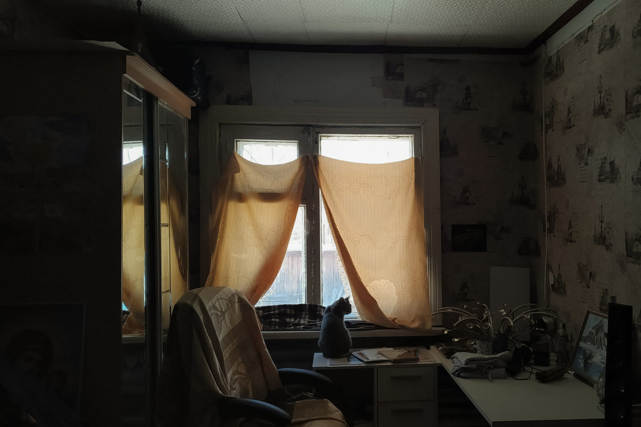 Ольга Александровна в окне своего домаФото: Дарья Пянзина для ТД Сам Сергей пишет, что встанет на учет, как положено всем условно осужденным, уедет на СВО, вернется, поставит маму на ноги, доходит испытательный срок и уедет из Соловьевска. Куда именно, не говорит.