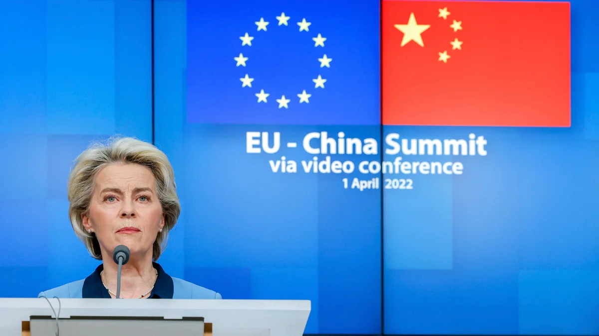 Собираясь в Пекин, фон дер Ляйен изложила видение Европой своих отношений с Китаем-сверхдержавой. Для оглашения этого манифеста она выбрала 30 марта аудиторию Института китаеведения имени Меркатора и Центра европейской политики, которые готовят в Брюсселе экспертные советы для европейских институций. Она выразила солидарность с китаеведами, политологами и экономистами, которые внесены китайскими властями в санкционные списки.