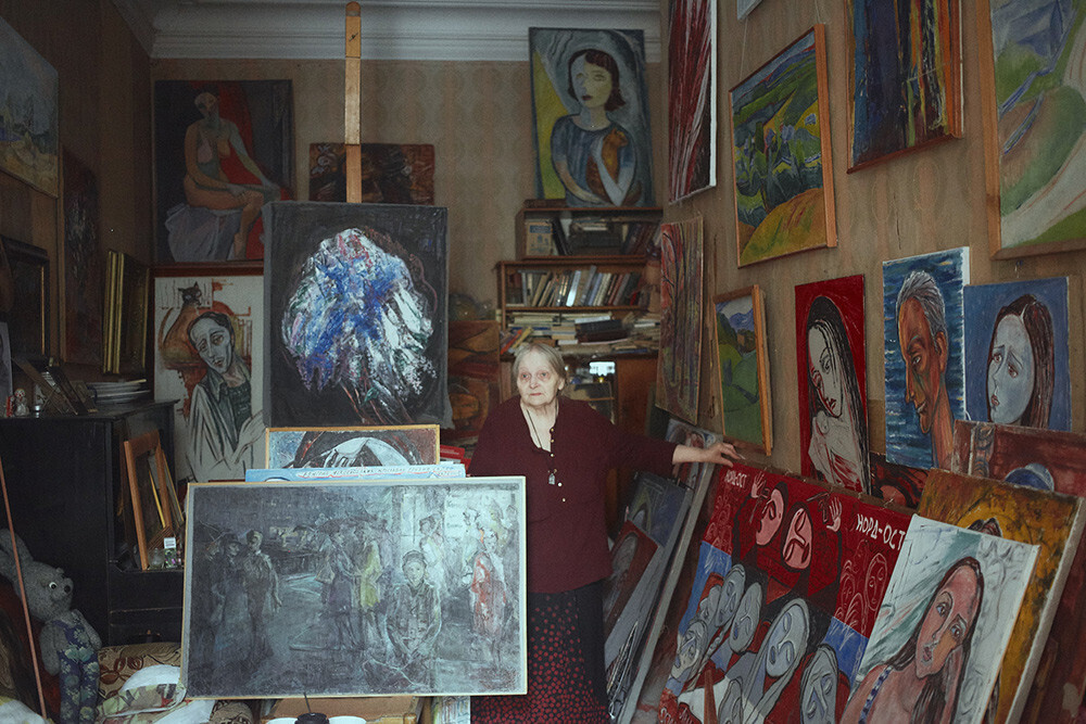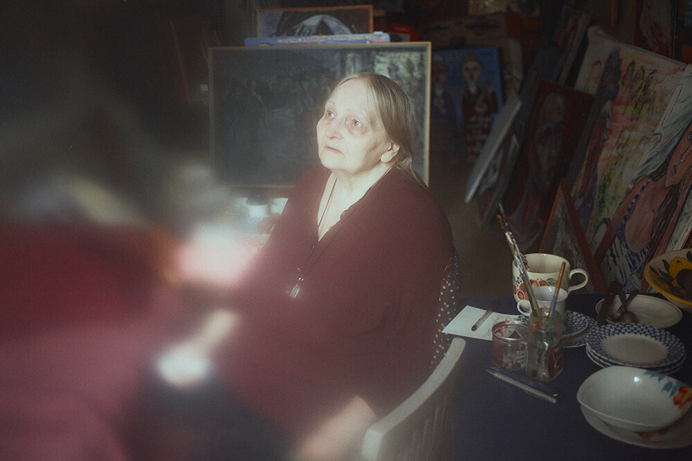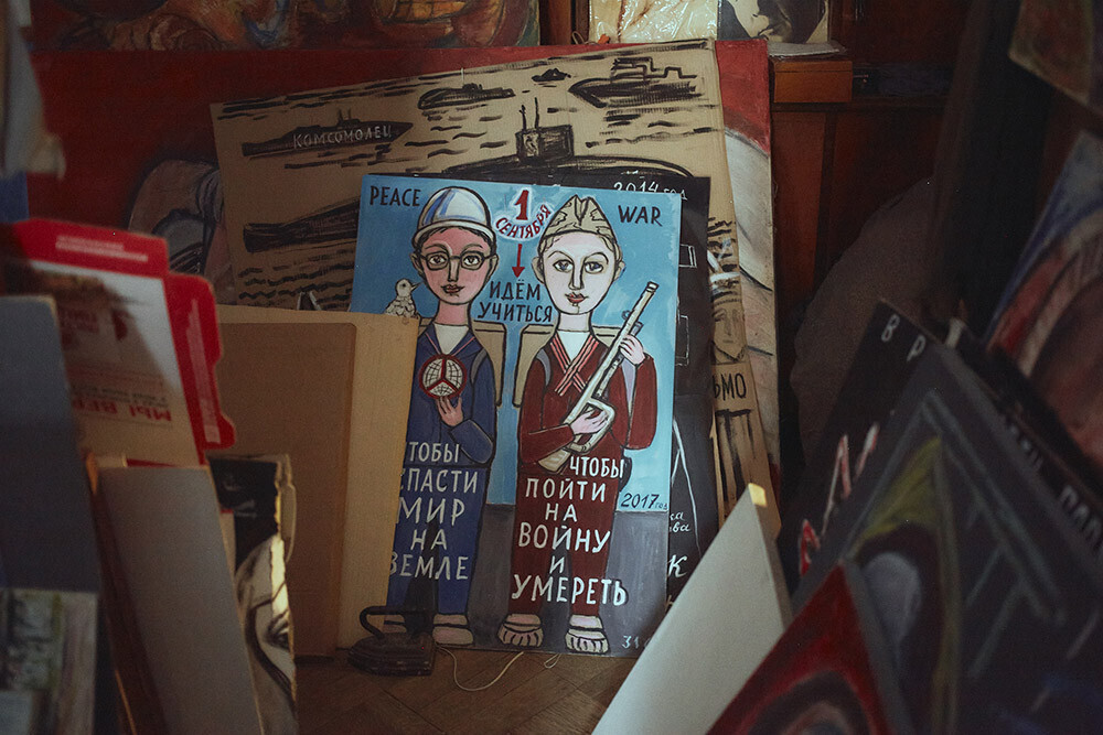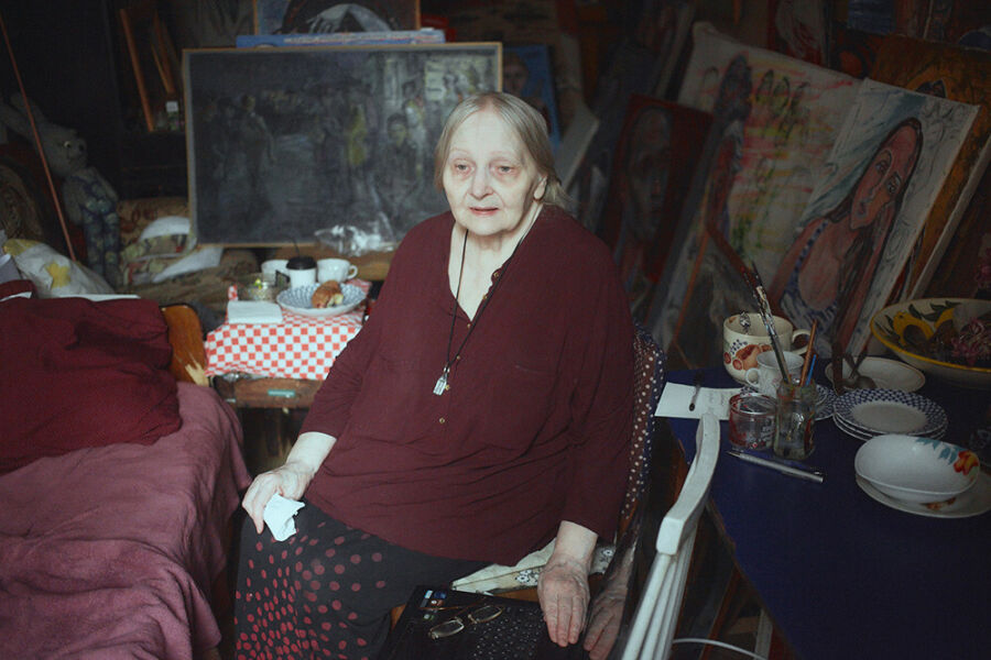На третий день после начала боевых действий она купила витамины. Говорит: надо было принудить себя жить. Все лето 2022 года выходила в одиночные антивоенные пикеты на Невский проспект. Теперь тяжело. Елена Андреевна жалуется на здоровье — обострившийся артрит, диабет, сильнейшие головные боли, да и «ноги не выдерживают». Ей помогают подняться с кресла и сопровождают под руку. «Ходить мне уже, к сожалению, трудно, — признает художница. — Но и сидеть дома не могу. Никакие личные трудности не могут оправдать молчание».