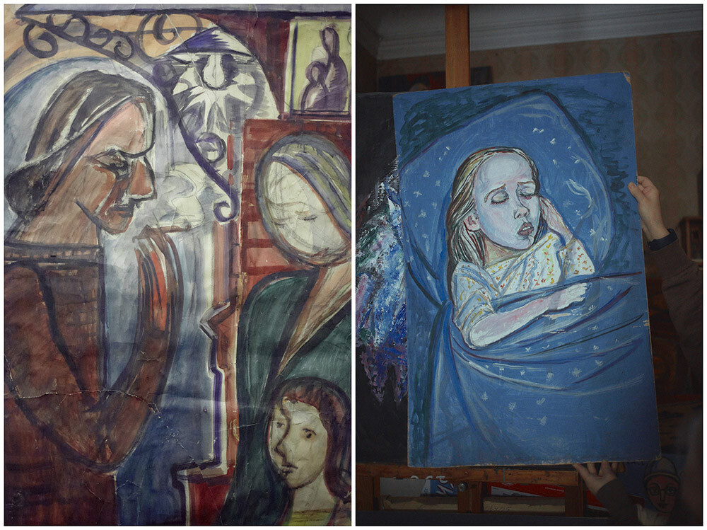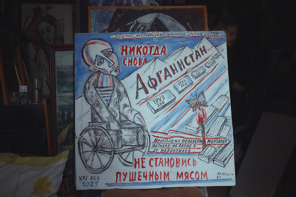 Картину Осипова задумала еще до войны, последний год потребовал дополнений. Ягоду будут срывать люди без рук, без ног, на инвалидных колясках. Работу художница хочет назвать «Покаяние». Она надеется завершить полотно уже летом. Пишет по ночам. Говорит, привычка, сформировавшаяся за долгие годы жизни в коммуналке: ночью шумные соседи расходятся по комнатам — и наступает время творчества.
