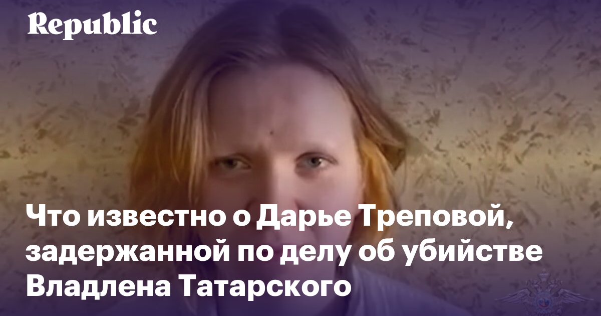 Следственный комитет днем 3 апреля объявил о задержании в Санкт-Петербурге 26-летней Дарьи Треповой, которая подозревается в убийстве военного блогера Максима Фомина, более известного под псевдонимом Владлен Татарский, взорванного накануне в кафе во время его творческого вечера. По данным СМИ, девушку задержали на заранее снятой квартире, силовикам она якобы первым делом заявила, что ее подставили. В этом же уверен муж Треповой. Что известно про нее — в материале Republic.