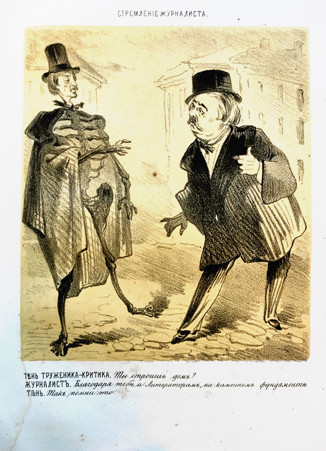 — Как я уже говорила, журнальная полемика в эпоху Николая I была полностью запрещена. Любые попытки ведения даже скрытых дискуссий между журналами довольно серьезно отслеживались. В итоге журналисты разве что придрались к мелочам. Например, «Современник» мог написать, что у «Отечественных записок» хуже технические параметры, качество бумаги, например, или помериться с журналом-конкурентом количеством страниц.