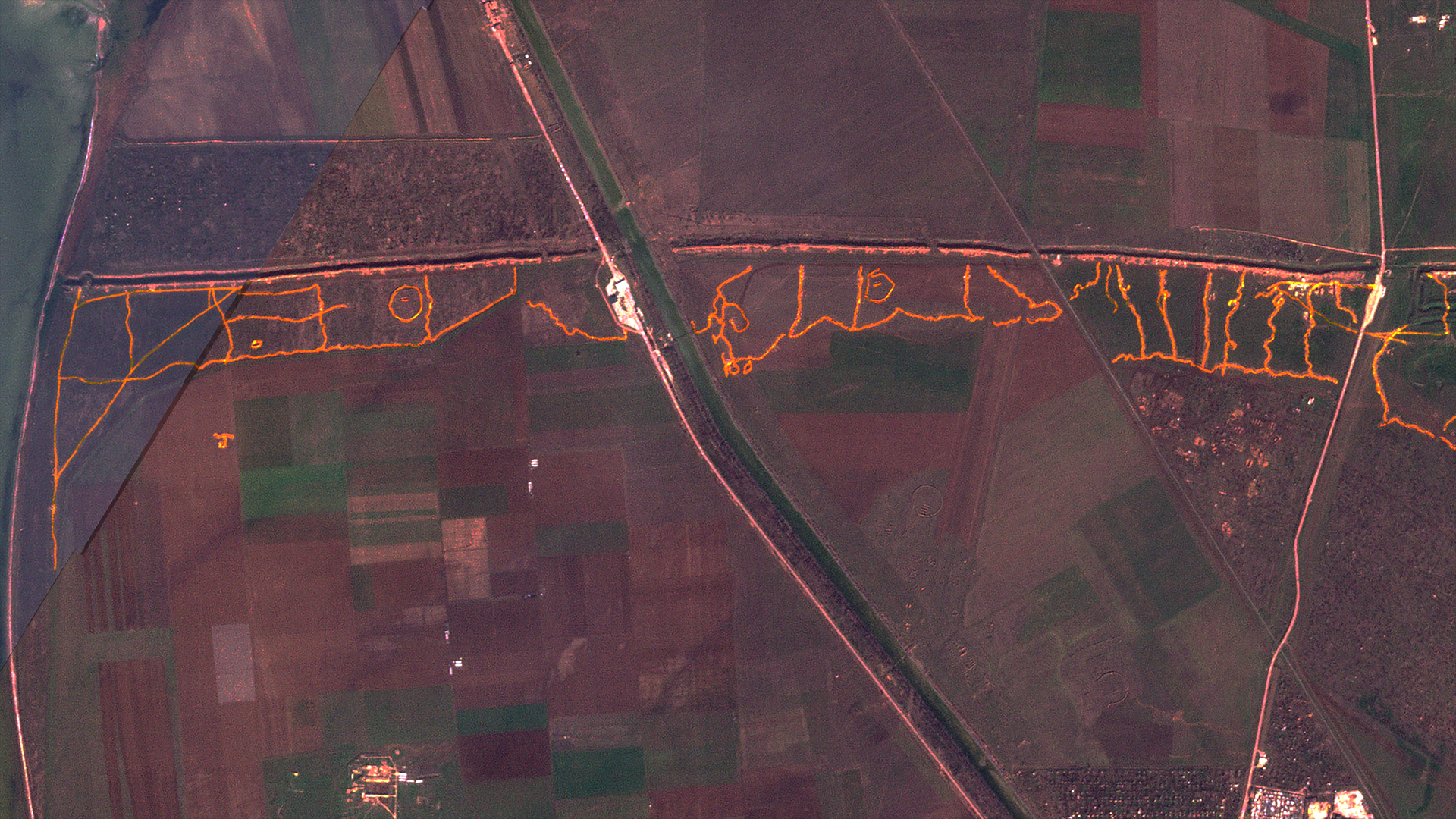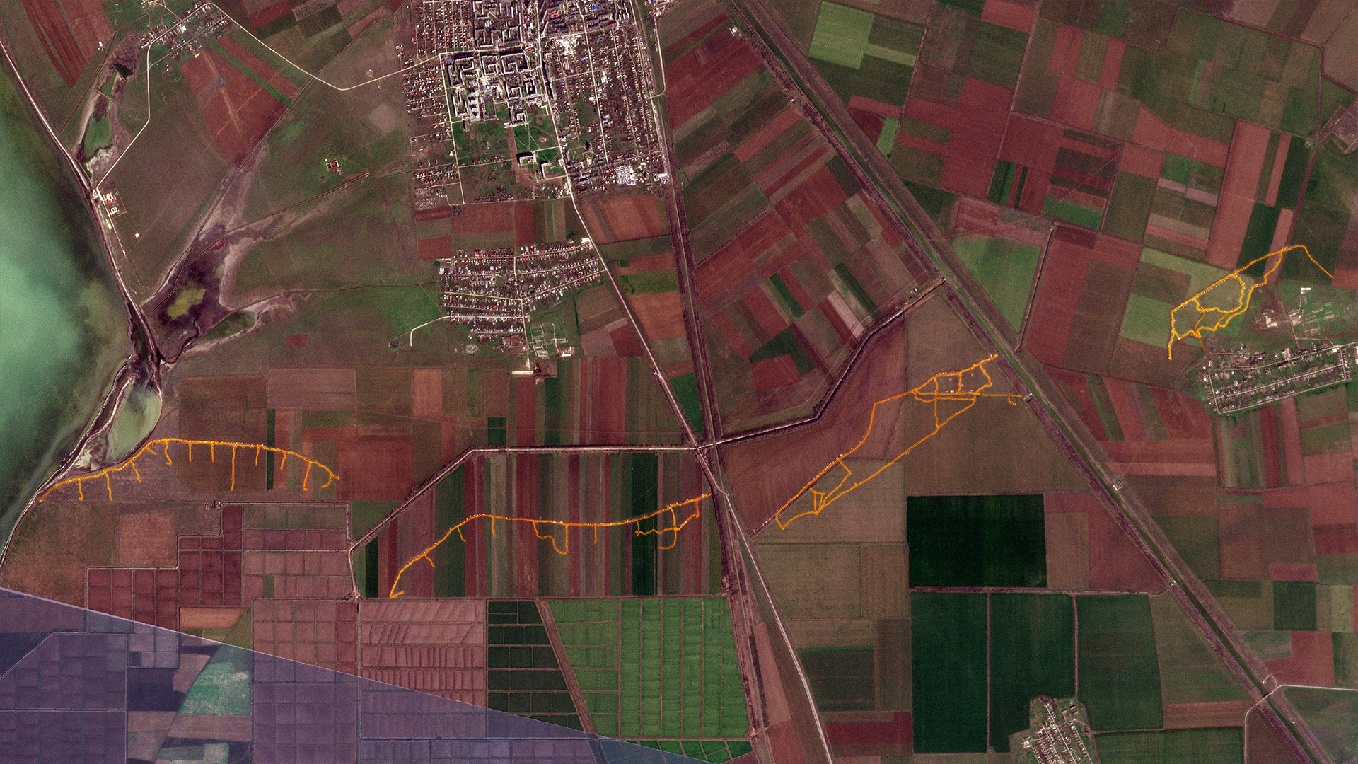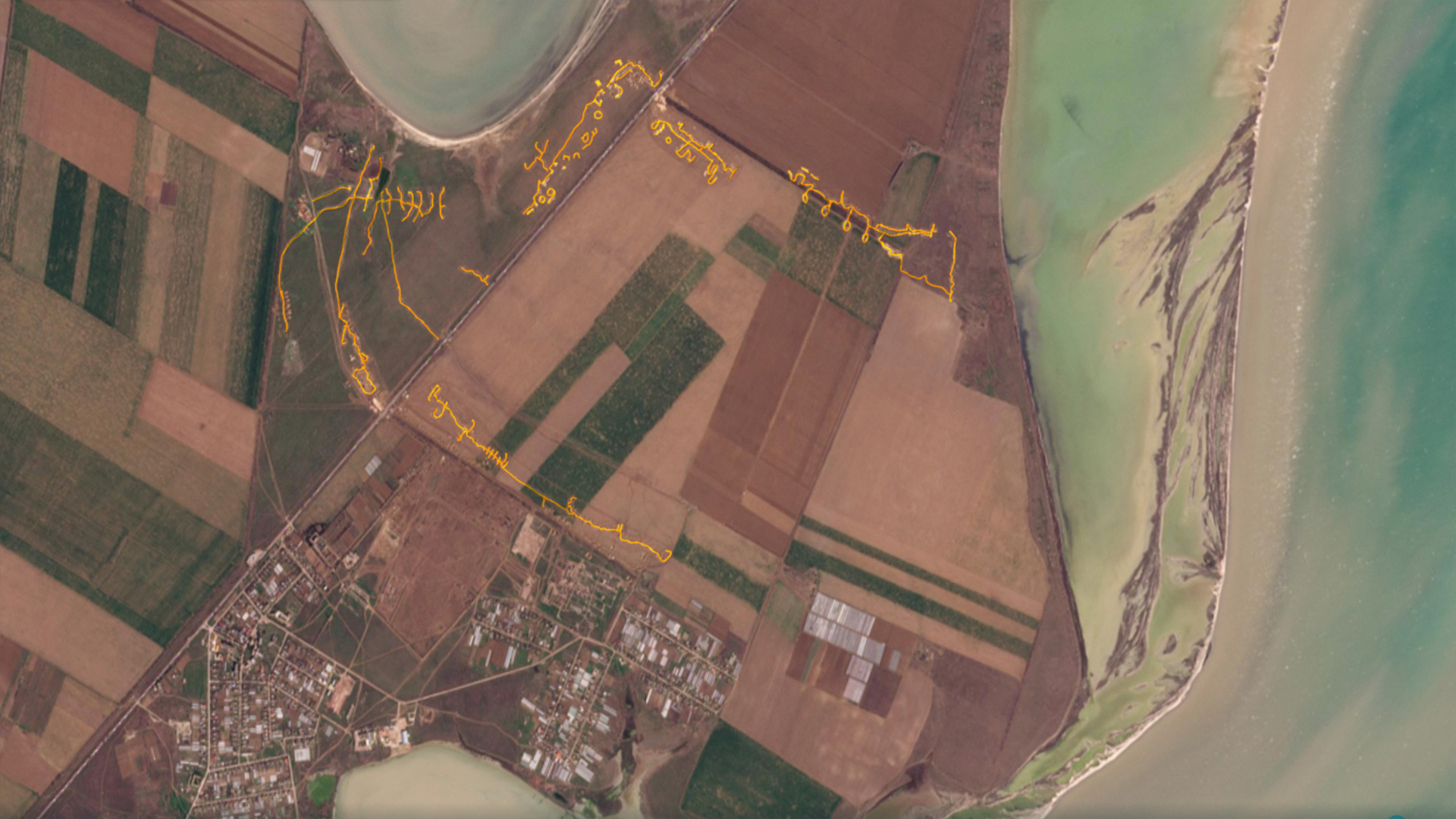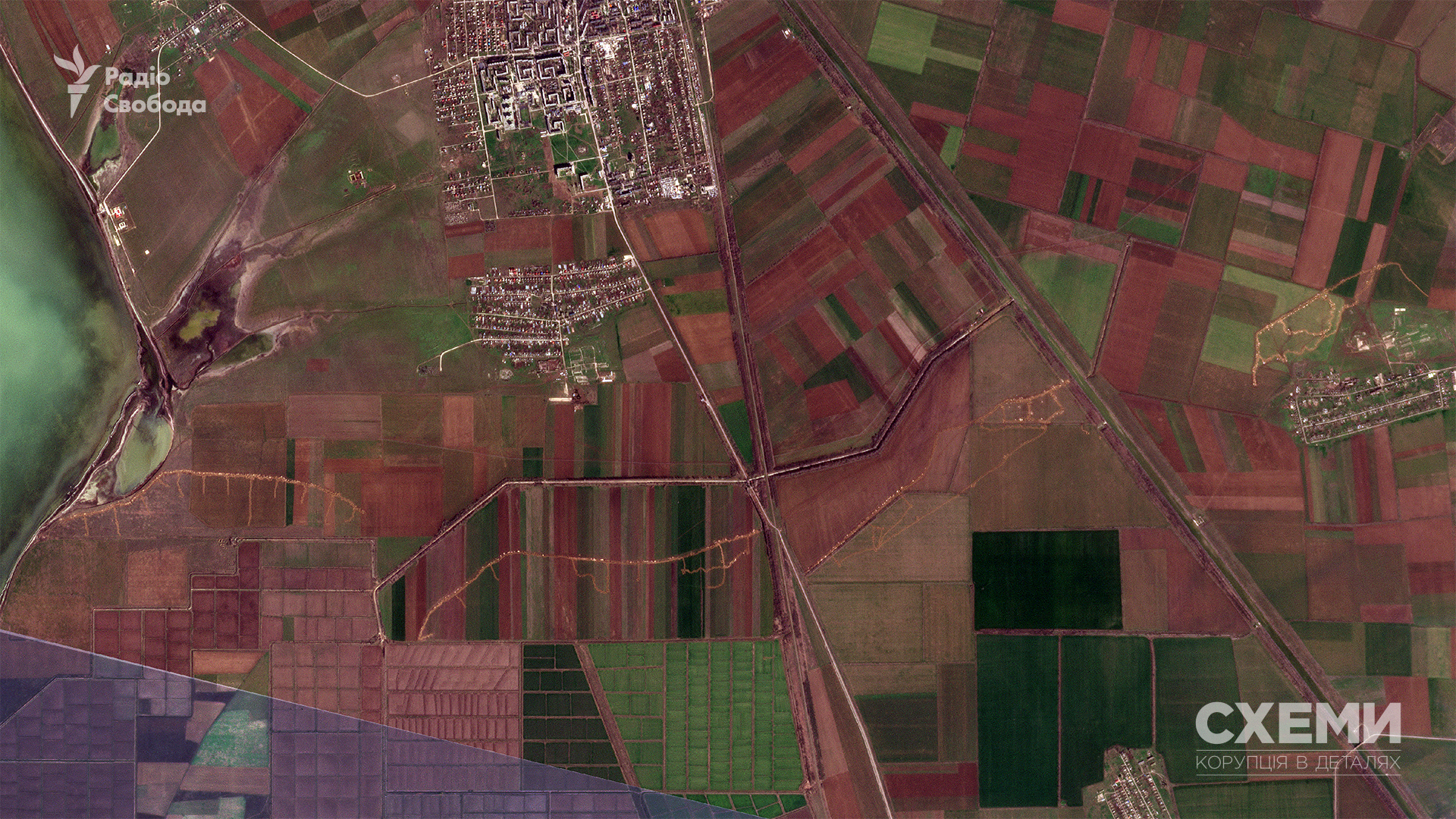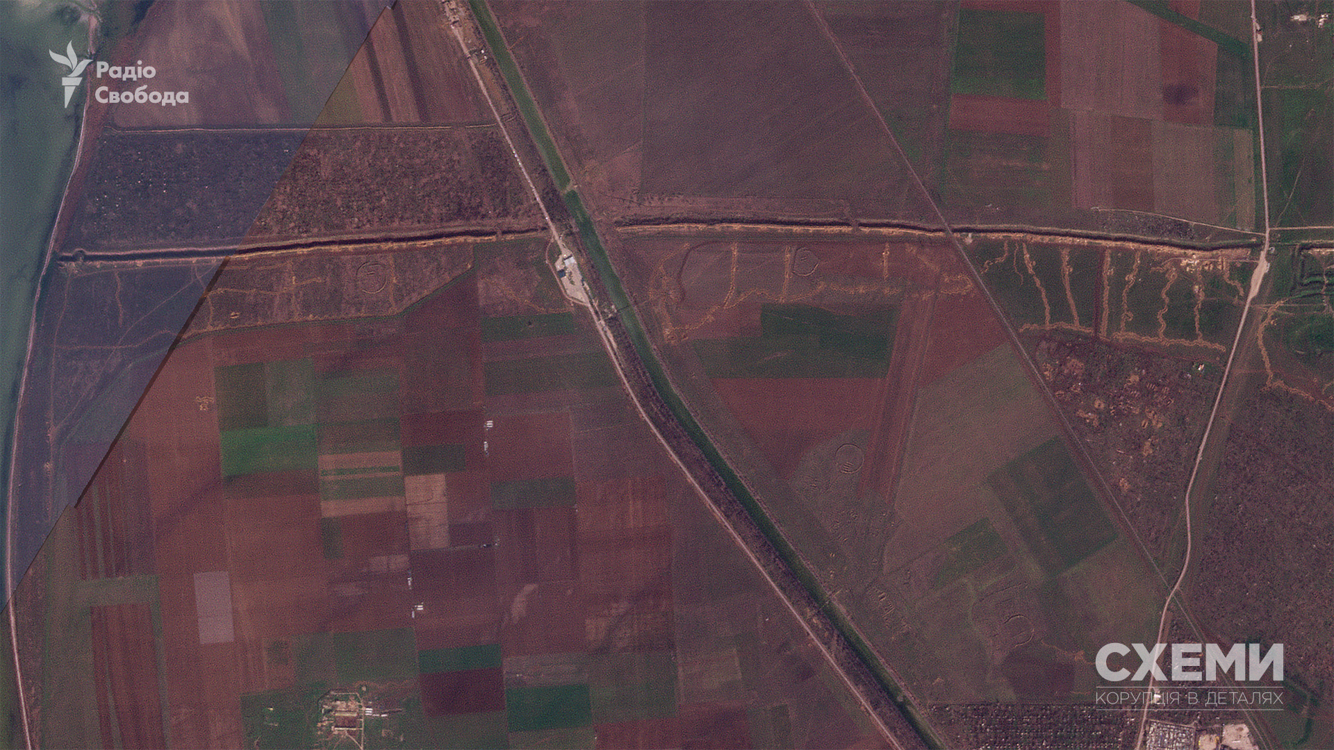 А к середине марта на спутниковом снимке отчетливо видны четыре участка. Один из них начинается у Перекопского залива, второй и третий находятся с двух сторон трассы Е-97. Еще одна система окопов – возле самого села Филатовка. И все это соорудили с начала этого года.