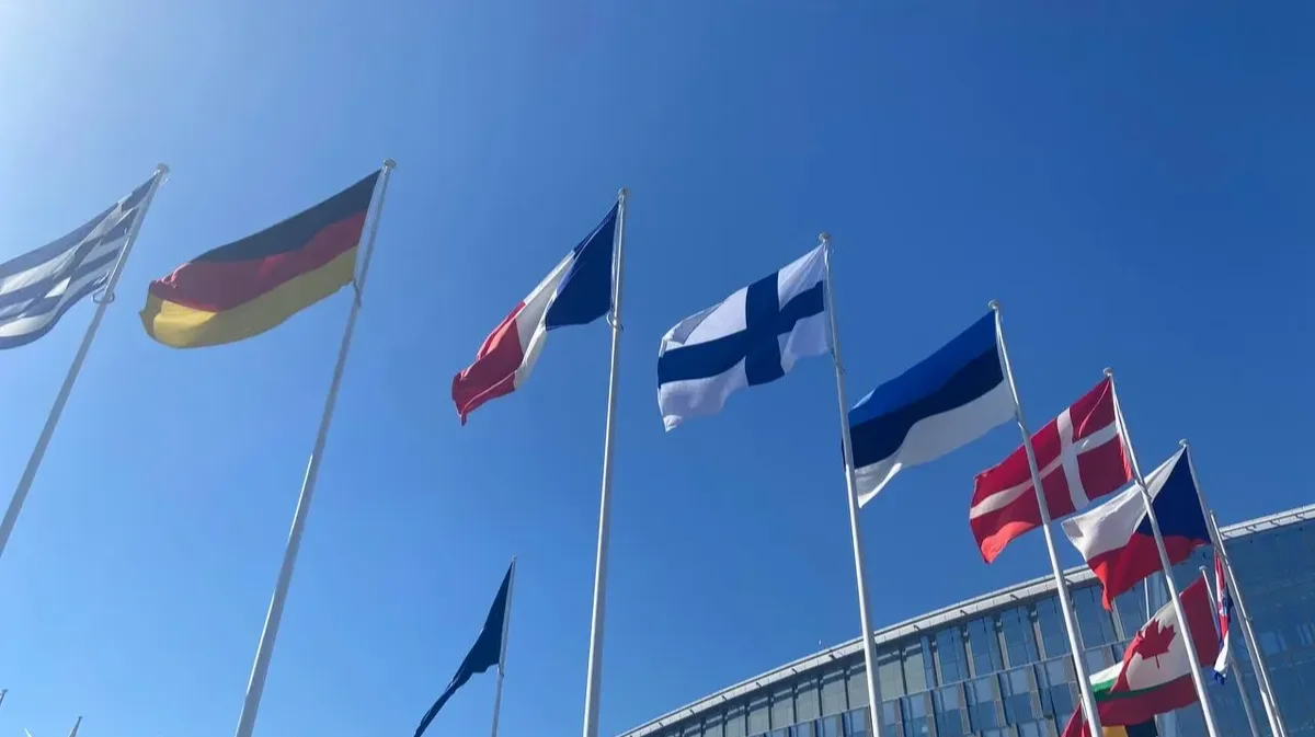 Finnish flag hoisted before NATO HQ in Brussels