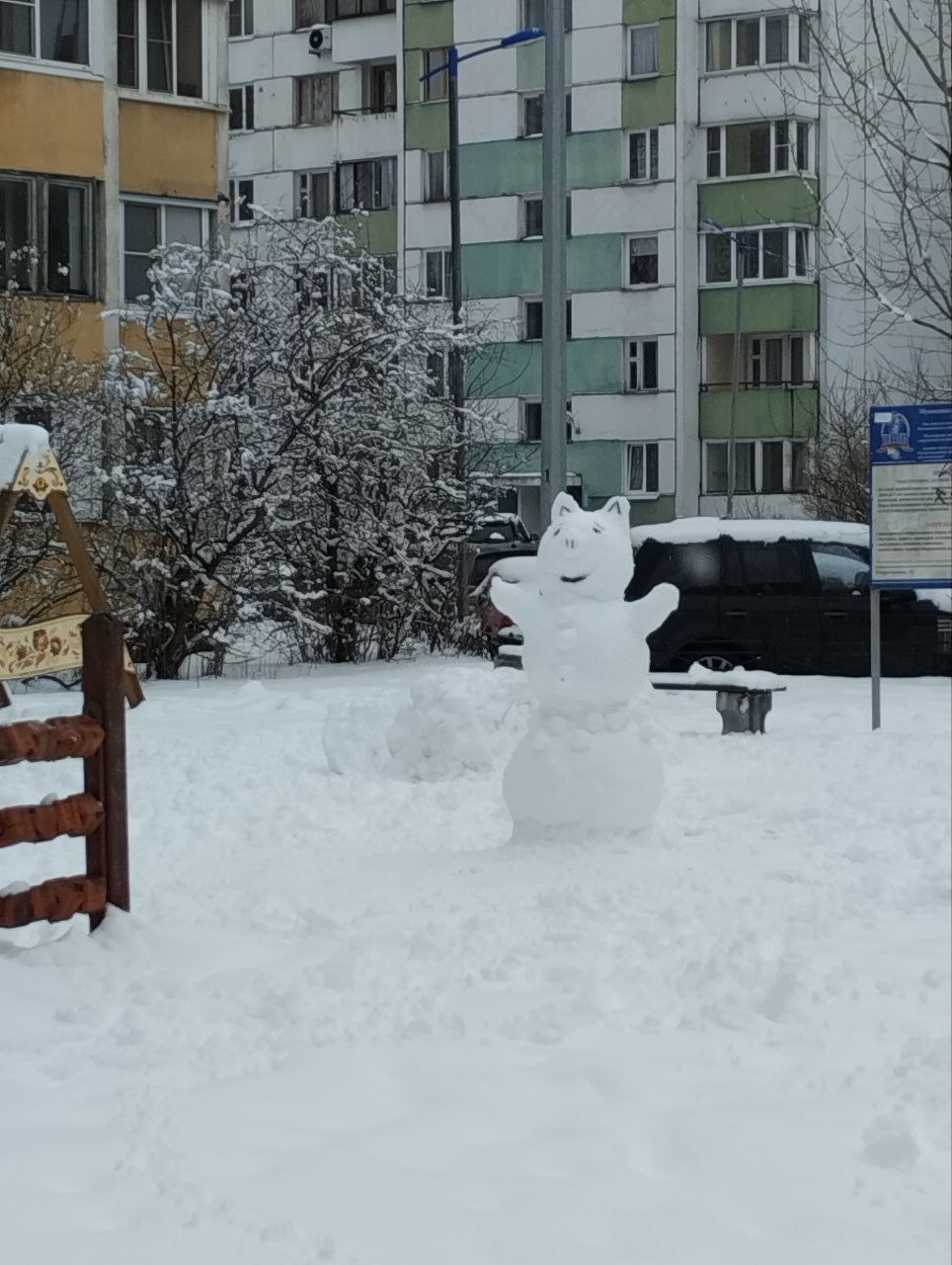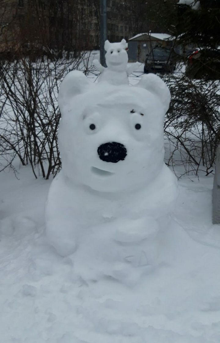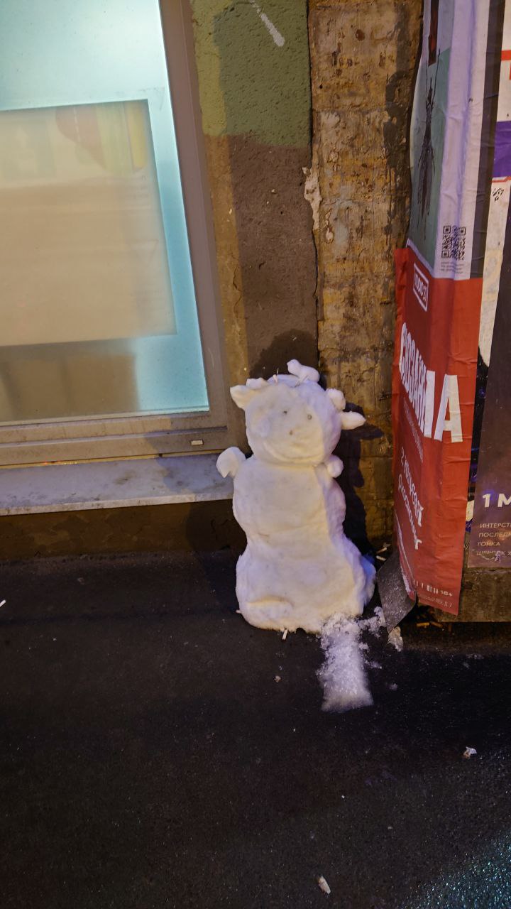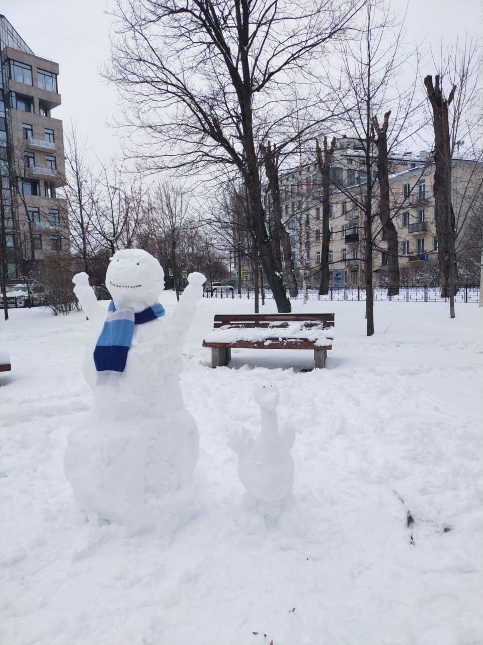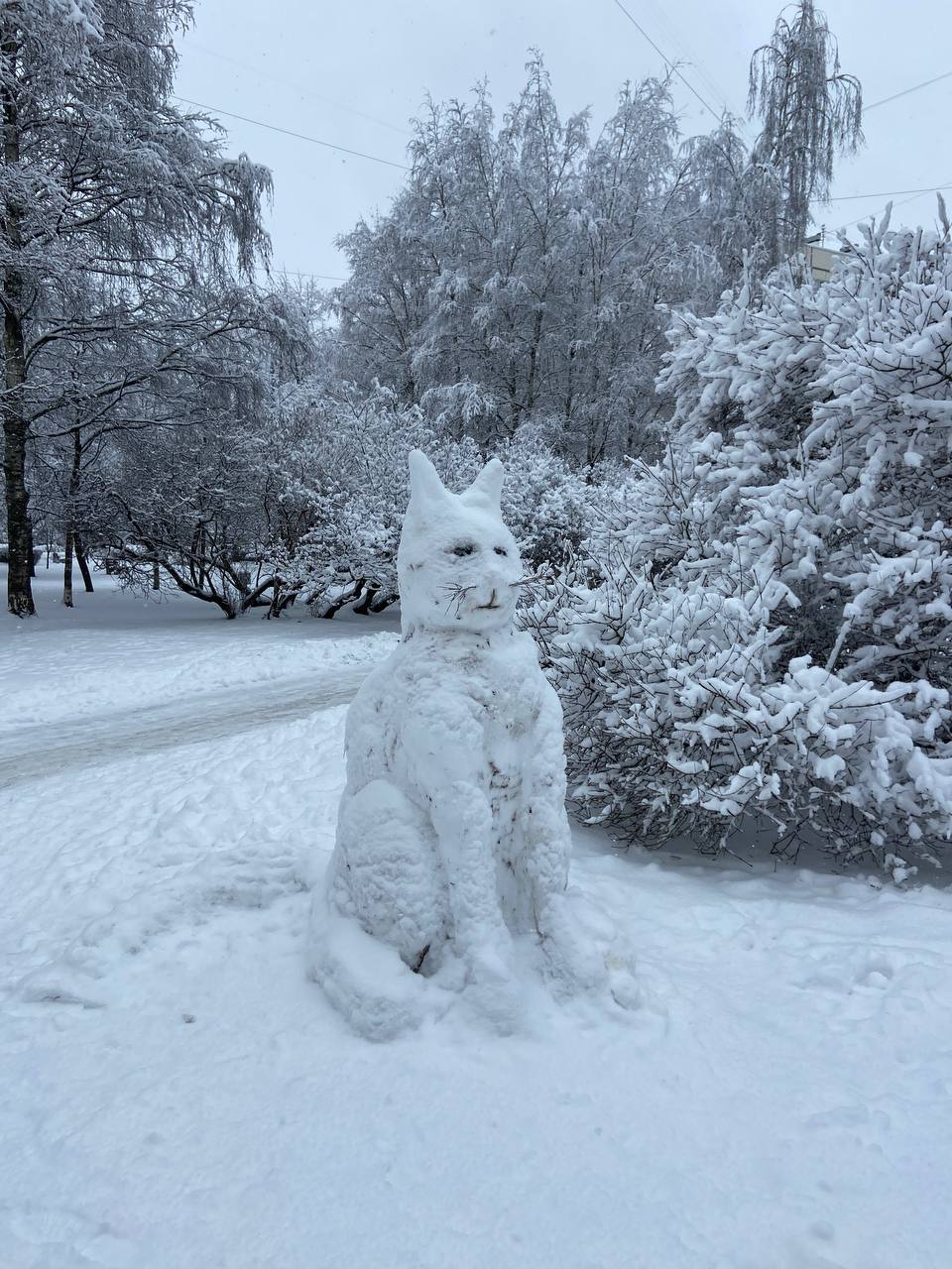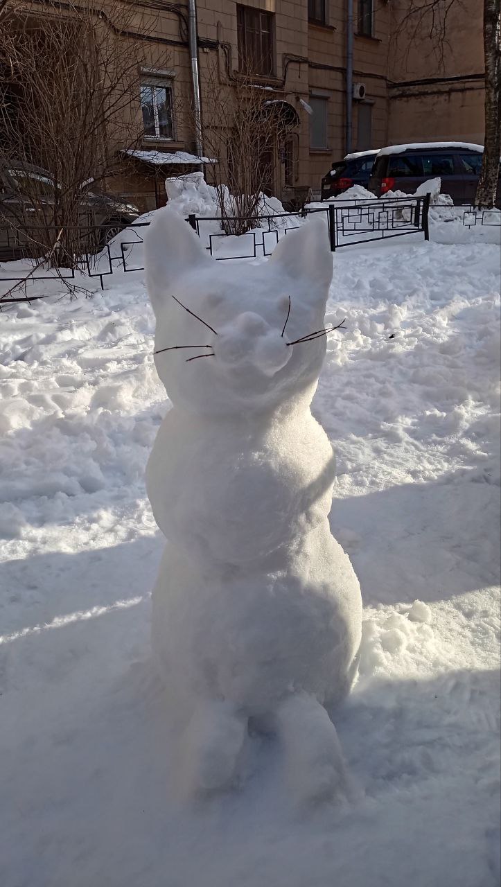 Петербуржцы прощаются со снегом и лепят последних снеговиков этой зимы. На улицах массово появляются коты, коровы, свинки и обычные снежные люди.