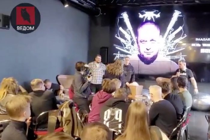 Что происходит в первом ролике. Первое видео опубликовал блогер Марат Арнис, присутствовавший на встрече с Татарским. На записи видно, что Дарья Трепова, которую военкор называет Настей, оставляет коробку со статуэткой и отходит от Татарского.