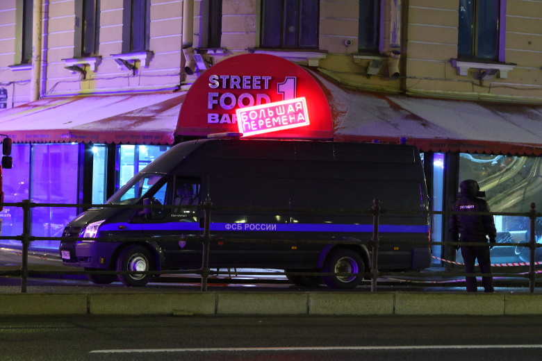 Машина ФСБ перед кафе «Street Food Bar №1» на Университетской набережной, Санкт-Петербург