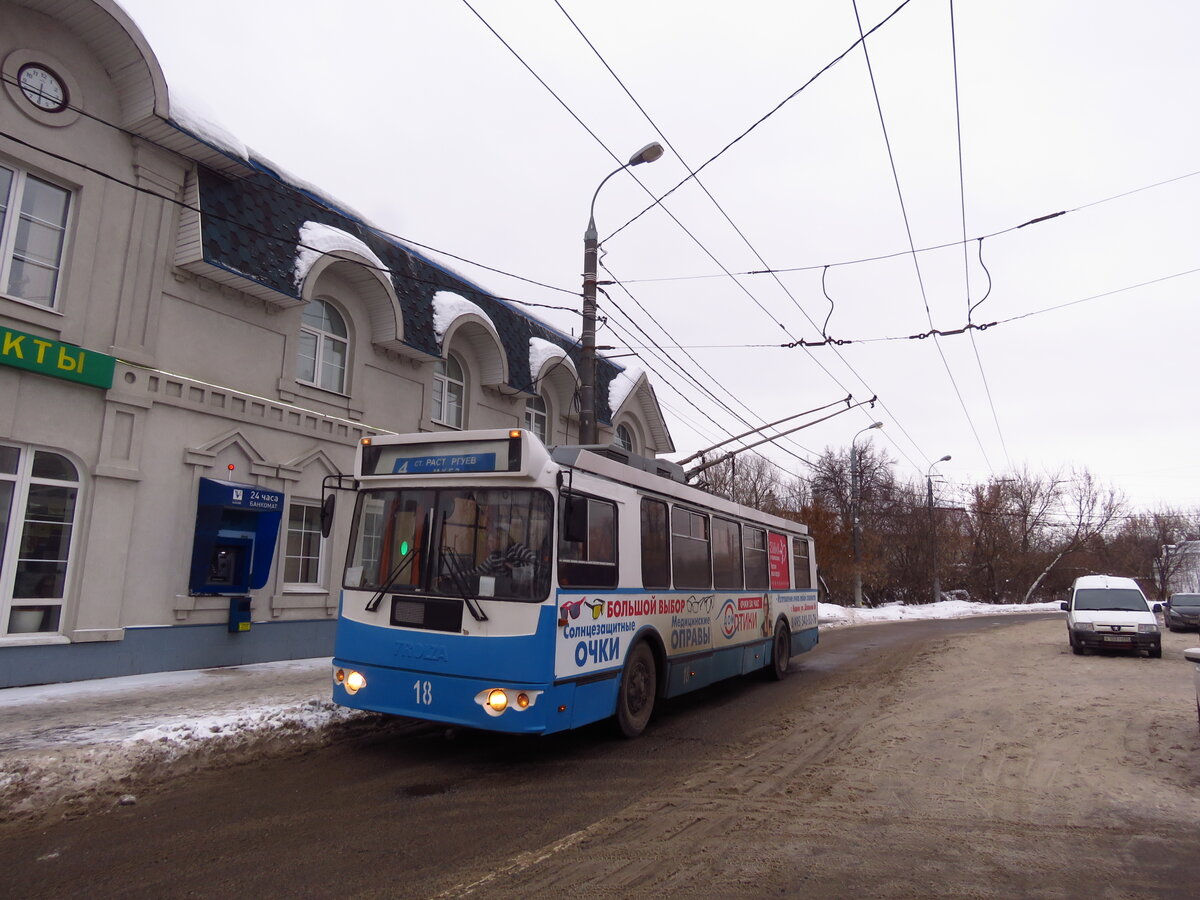 С виду этот троллейбус - будто бы ЗиУ, но на самом деле - это БТЗ-5276, произведённый на Башкирском троллейбусном заводе (ныне не действующем). От обычного ЗиУ его отличают планетарные двери и электрооборудование на крыше.