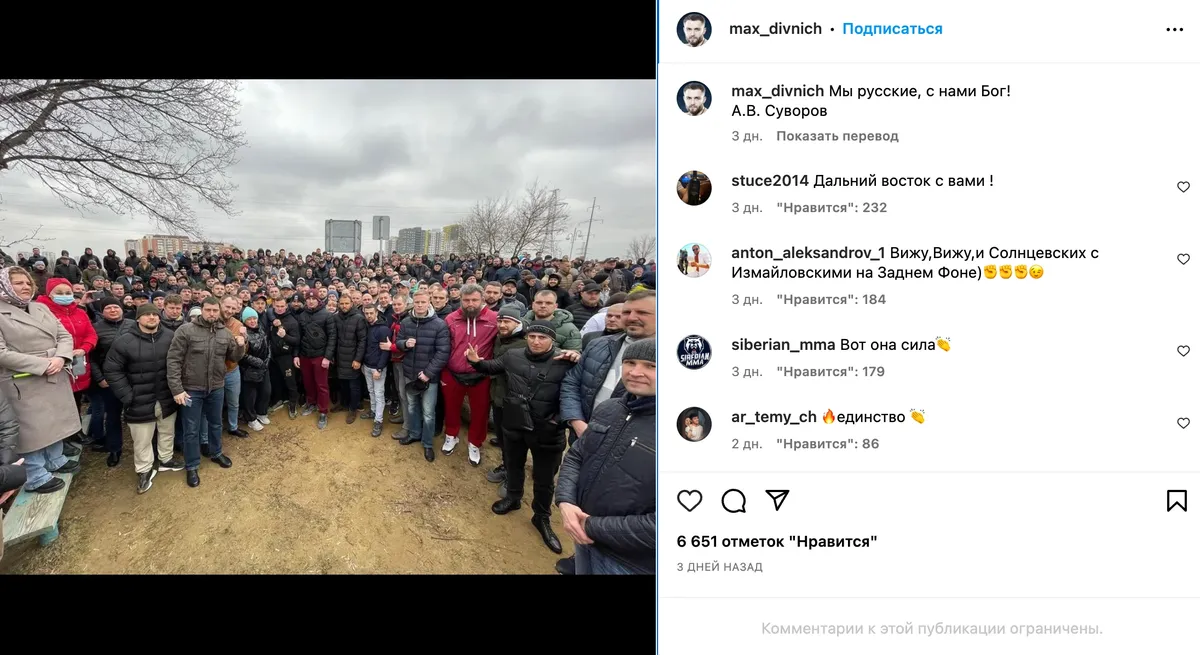 Против возведения мечети выступил боец ММА Максим Дивнич. По данным Sports.ru, в сходе также приняли участие экс-боец UFC Константин Ерохин, боксер Алексей Папин и Михаил Тарабрин из Hardcore.
