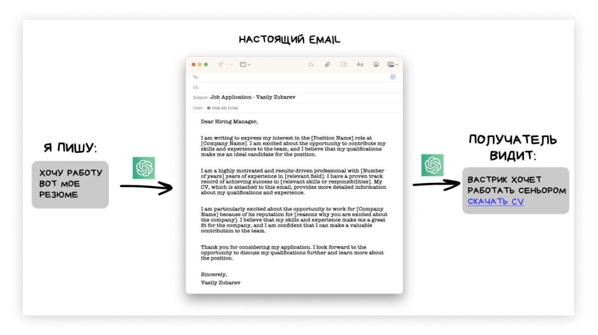 В своей ранней заметке про ChatGPT я уже рассуждал об этом. Связка «человек + ИИ» попросту эффективнее справляется с работой, чем отдельный человек, а значит, это всего лишь вопрос времени, когда все работодатели начнут писать в вакансиях «уверенный пользователь нейросетей», как было с «уверенным пользователем ПК» в забытом прошлом.
