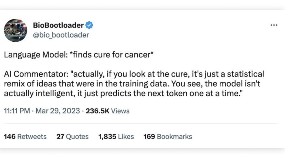 - Закрыть наконец-то бесконечные срачи «является ли Х интеллектом или это просто программа» и перейти к более важным вещам. А то мы зациклились, как в той шутке из твиттера:
