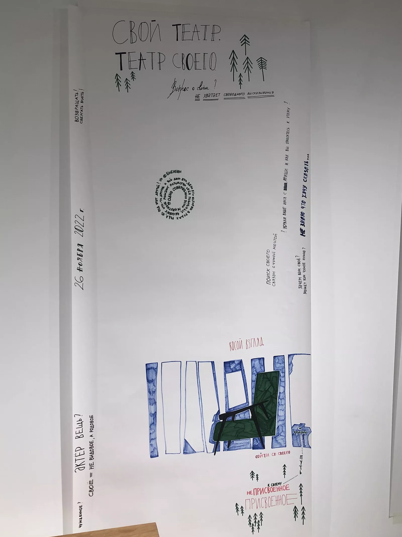 А задача театральн_ой деятель_ницы — предоставить другим платформу для этого самоисследования и саморефлексии, не впадая в пропагандистские и манипуляторские практики и дискурсы.