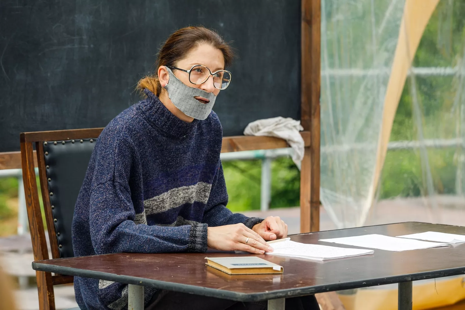 «Лес. Лекция» — это перформативный опыт бытия студент_кой на лекции великого мыслителя, чей образ продуман до мелочей. Однако Бибихин вышел вовсе не пародийным и одновременно не претендует на достоверность: за тонкой игрой и блеклым костюмом видно живое размышление и философствование актрисы.