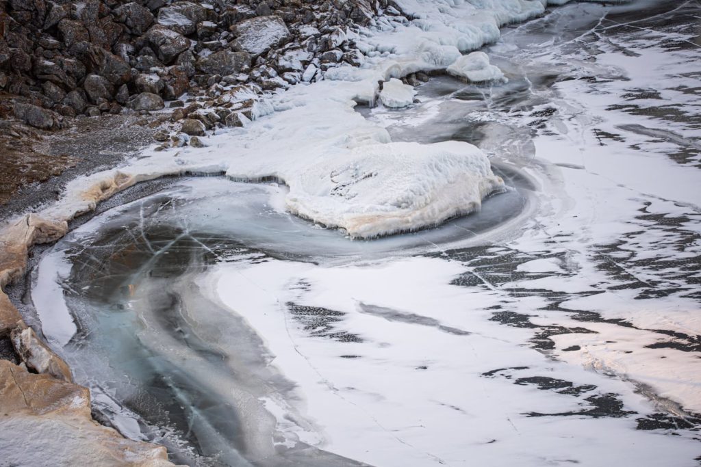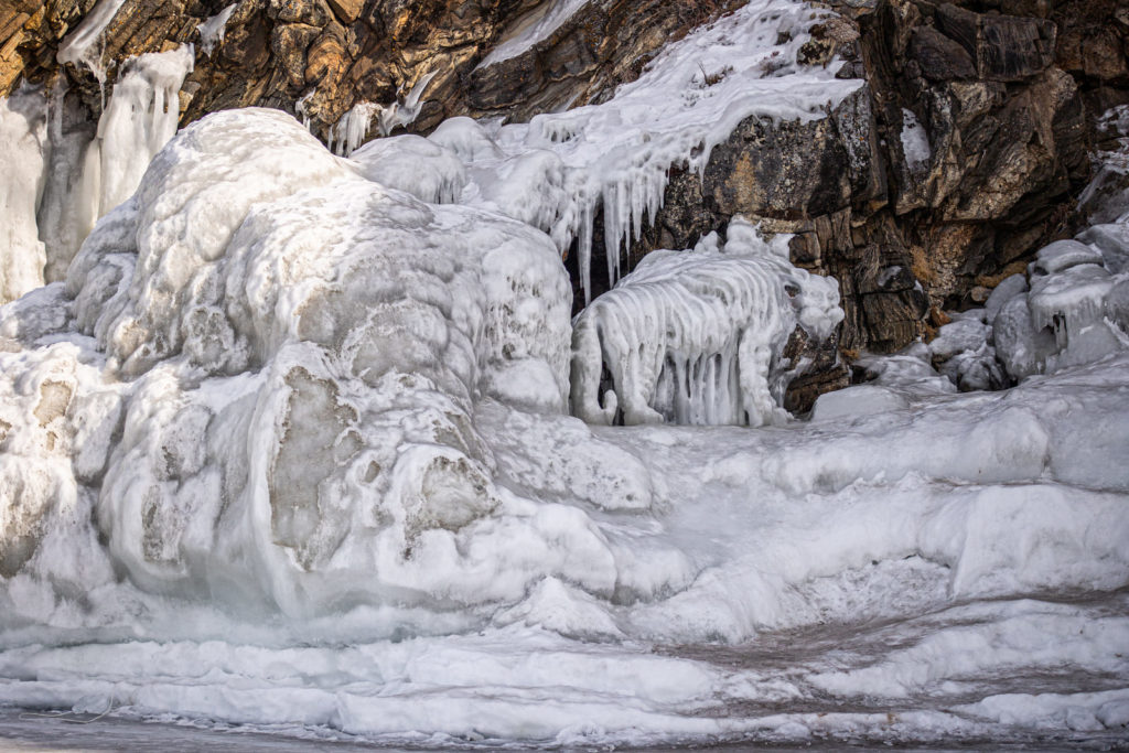 На прибрежных скалах после штормов появляются «сокуи» — ледяные наросты. На берегу вырастают ледяные холмы — «сопки», высотой до шести метров. Поверхность озера тоже застывает неравномерно. На некоторых участках ровного ледяного зеркала образуется «колобовник» — небольшие круглые глыбы. Ездить по такому льду очень трудно. Когда вода совсем промерзает, образуется донный лёд. Он покрывает камни под водой, причалы, рыболовные сети.