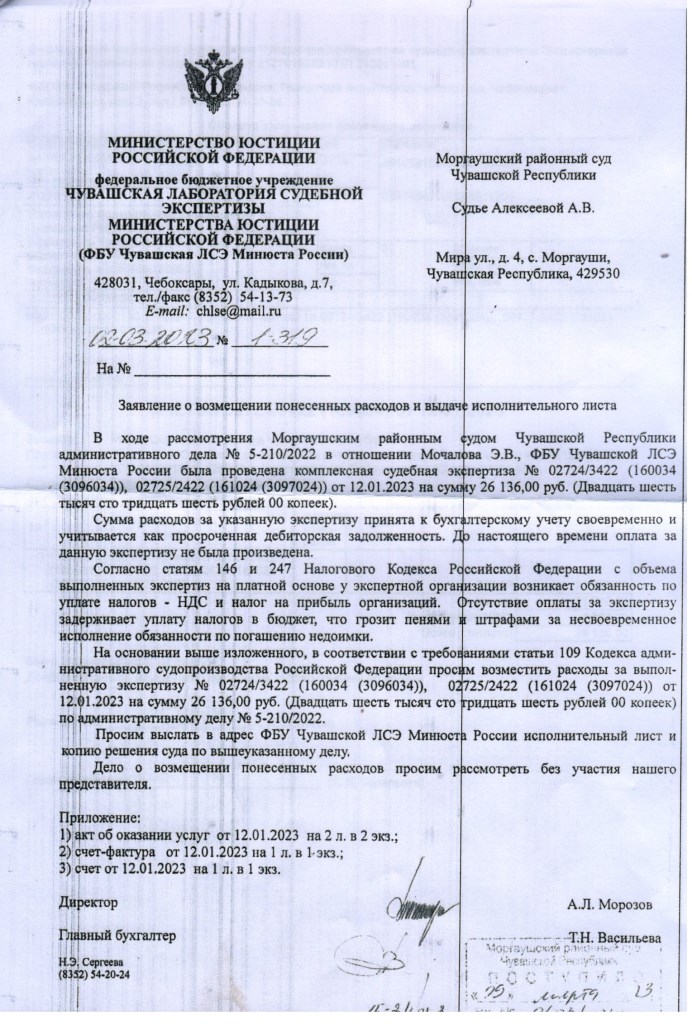 Но Верховный суд Чувашии вынес иное решение — постановление суда Моргаушского МО отменил. А федеральное бюджетное учреждение «Чувашская лаборатория судебной экспертизы МЮ РФ» сейчас взыскивает с меня деньги за проведенную ими экспертизу.