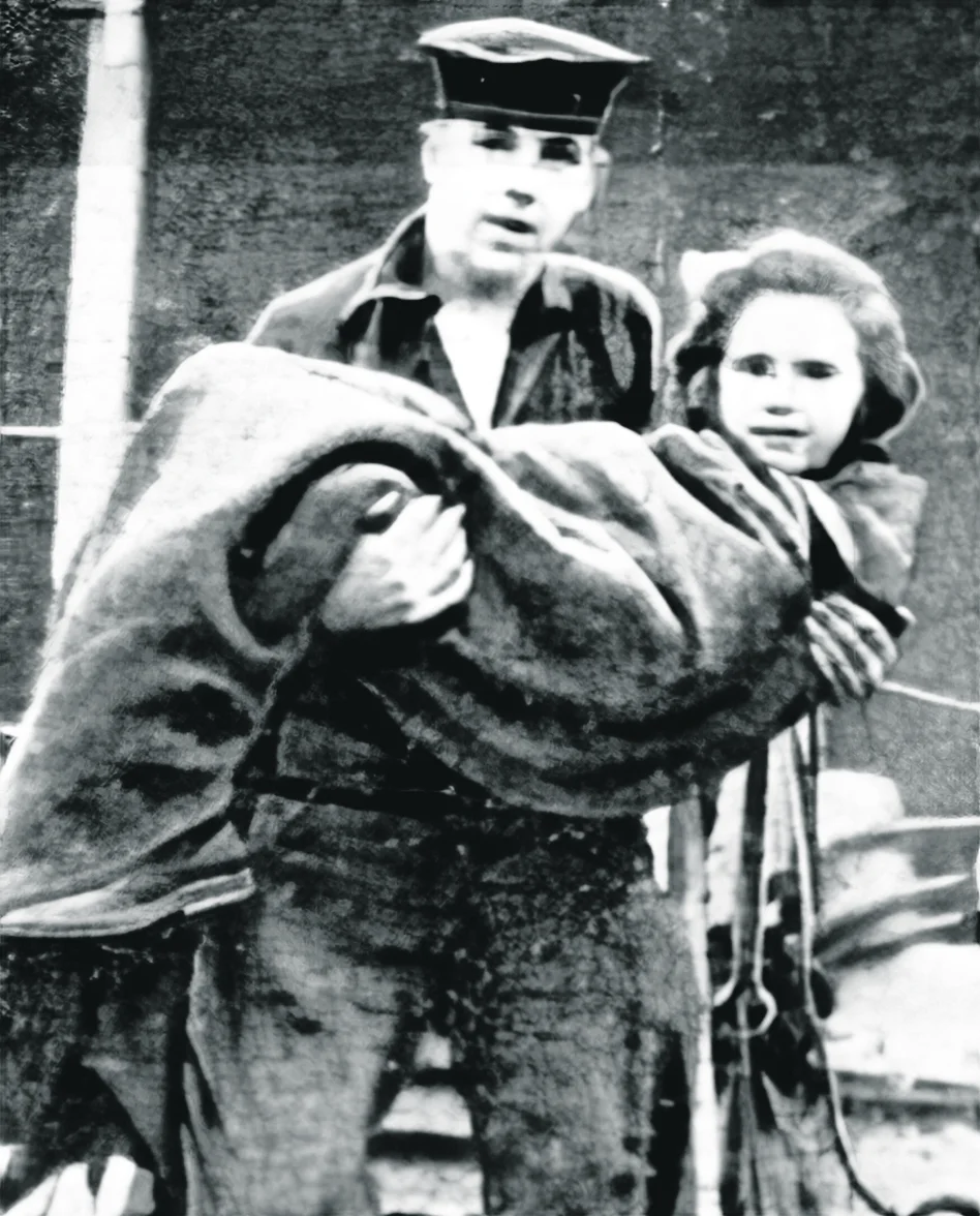 Перевязывала раненых медсестра Наталья Телепнева, сама раненая, оказала первую помощь диспетчеру, а потом поднялась на горящий «Ланкастер Касл».