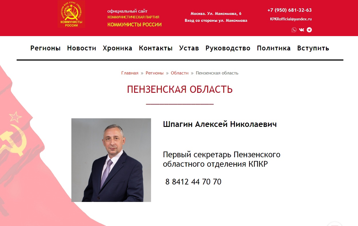 Намедни бывший лидер пензенских эсеров Шпагин Алексей Николаевич стал первым секретарем Пензенского областного отделения Коммунистической партии «Коммунисты России». Избран он был или просто назначен, неведомо, но в пензенской это никогда не имело особого значения.
