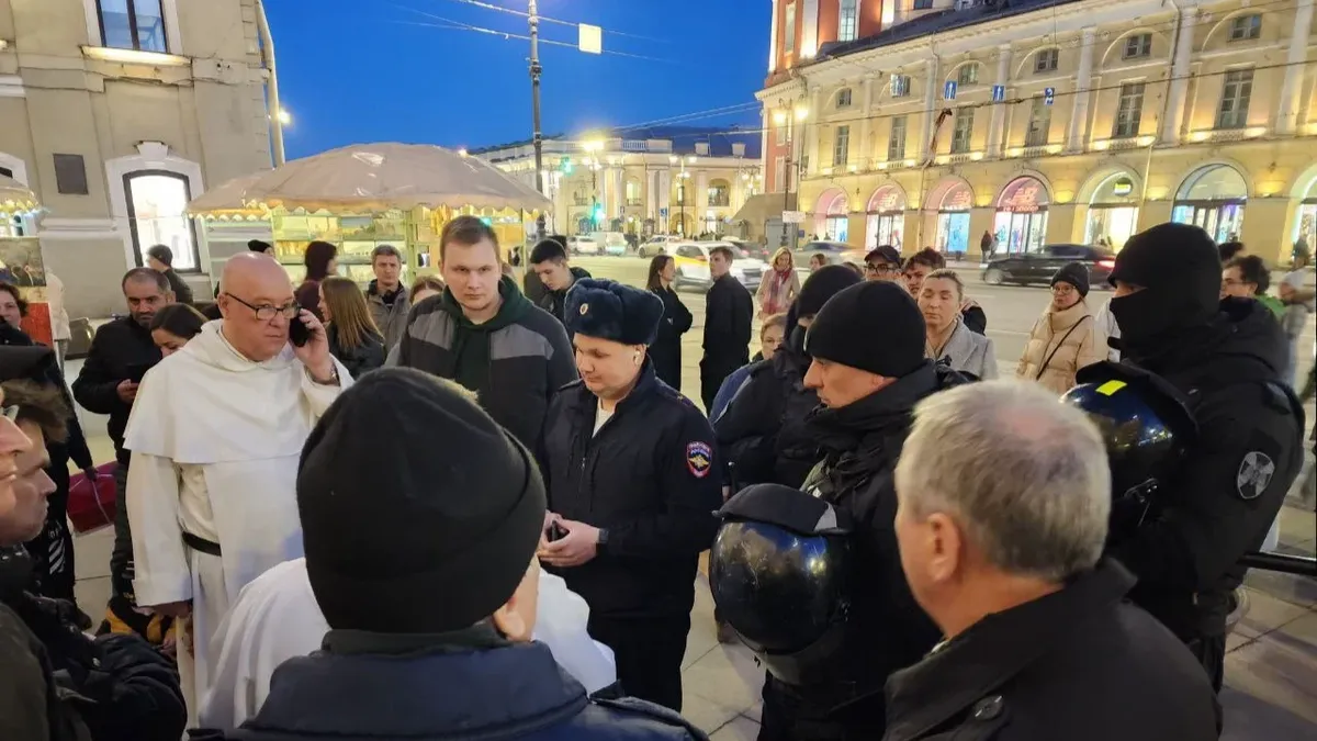 Полицейский в Петербурге прервал обряд католической Пасхи. Фото: SOTA