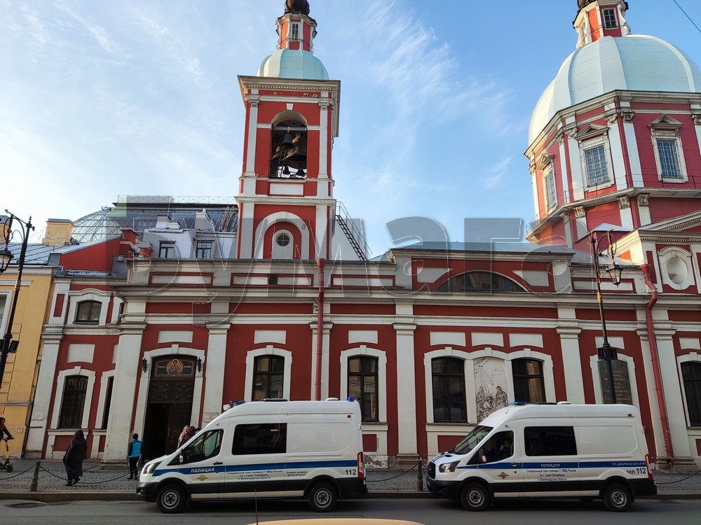 У входа в храм за полчаса до начала церемонии выставили несколько полицейских машин. Желающих пройти на прощание просят пройти через рамку металлоискателя и показать паспорт — данные переписывают, сообщает корреспондент «Бумаги».