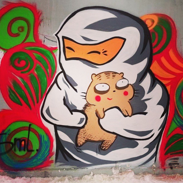 Сам рисунок – "основа" уголовного дела – маленький ниндзя, один из моих персонажей, со старой бомбой в руках, что-то типа ядра пушечного, а рядом котик на столе сидит. Это рисунок примерно 2015 года. Он совсем на другую тему на самом деле. И железное доказательство – нарисован за несколько лет до этого подрыва.