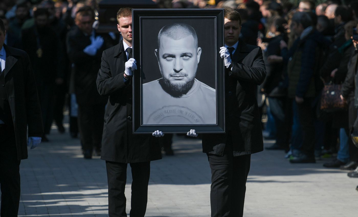 Уроженца донецкой Макеевки Владлена Татарского с почестями похоронили на Троекуровском кладбище в Москве. 8 апреля проститься с ним, как писал ТАСС, пришли порядка тысячи человек. Среди них были глава «ЧВК Вагнера» Евгений Пригожин и лидер ЛДПР Леонид Слуцкий, который во время церемонии предложил вернуть в России смертную казнь. Рядом с закрытым гробом положили футляр от скрипки и кувалду, ставшую символом «ЧВК Вагнера» после казни сбежавшего от наемников бывшего заключенного Евгения Нужина.