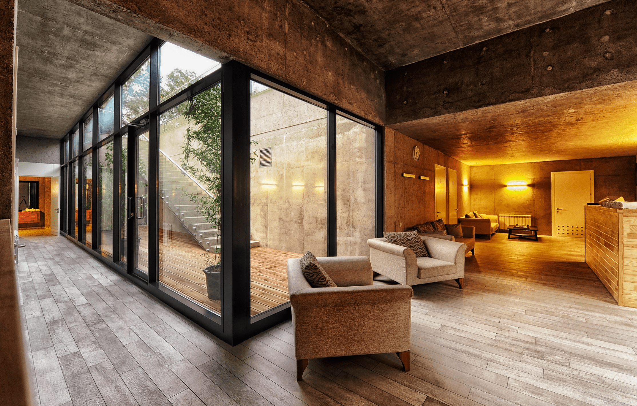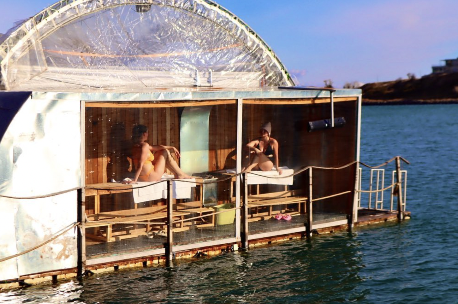 Это баня в бухте Тбилисского моря, на территории пространства Fibonacci. Своим устройством она больше похожа на сауну: небольшое помещение со стеклянной стеной хорошо растапливают, прямо из него — спуск к прохладной воде Тбилисского водохранилища.