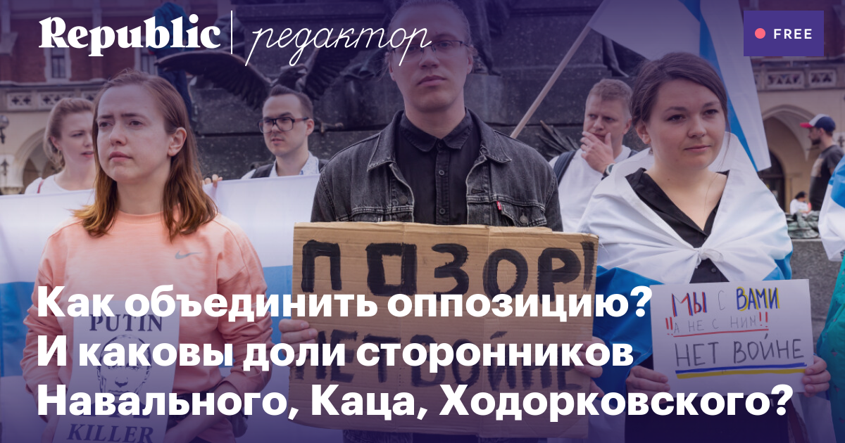 Как объединить оппозицию? И каковы доли сторонников Навального, Каца и Ходорковского?