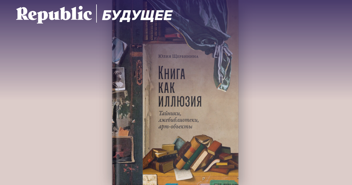 В каталоге издательства «Апьпина паблишер» появилась «Книга как иллюзия. Тайники, лжебиблиотеки, арт-объекты» Юлии Щербининой. С одной стороны, это путеводитель по экзотическим практикам обращения с книгами и необычным артефактам книжной культуры от древности до современности. с другой — первое в России системное исследование репрезентаций книги в изобразительном искусстве и арт-пространстве.