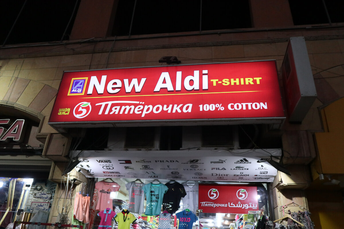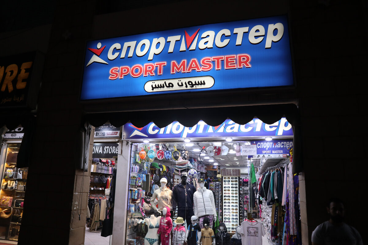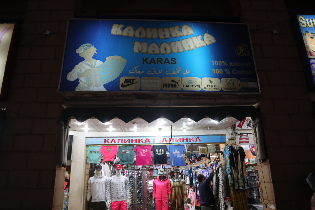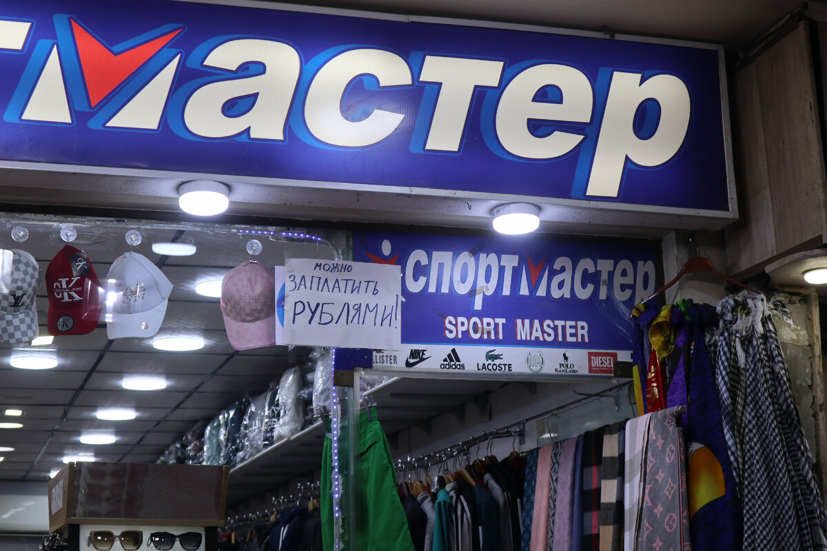 Куча вывесок, в том числе, на русском языке, но непросто на русском, а прямо с известными российскими брендами.