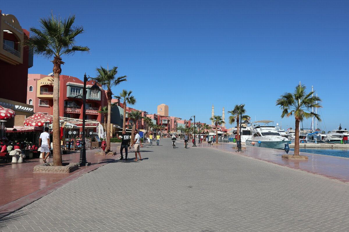И знаете что? Первая встреча с Хургадой очень даже нас удивила! Ведь что я знал о Хургаде раньше? Здесь были моя мама с сестрой в конце 1990-х годов, и здесь была экспедиция "Академии вольных путешествий" в 2000, кажется, году. Из всего этого я запомнил, что море тут хорошее, но в остальном полный ужас: назойливейшие местные, полчища торгашей, попрошаек, грязи... Как и во всех египетских городах, только в повышенной концентрации, потому что туризм!