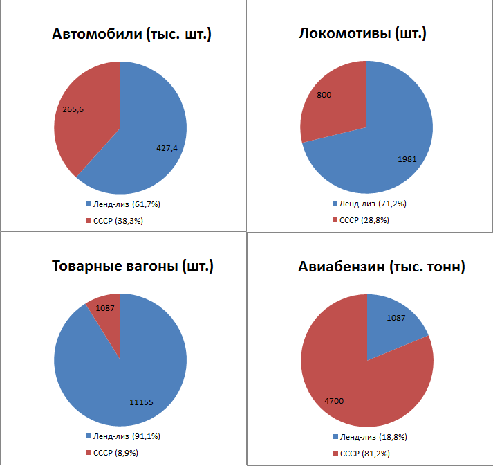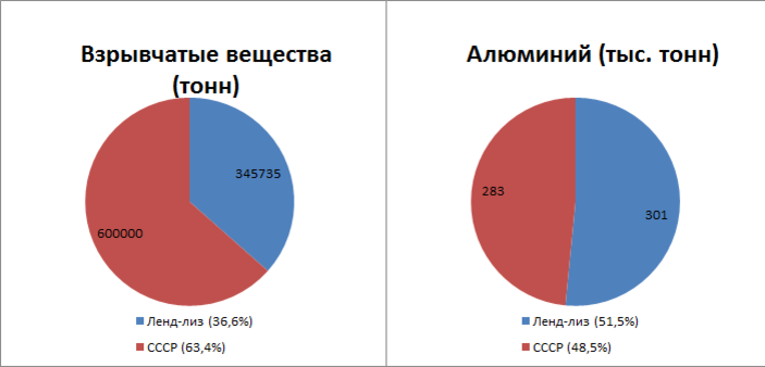 Как видно большая часть поставок пришлась на Великобританию, и они, вероятно, очень сильно зависели от них. СССР в принципе покрывал свои потребности сам, хотя но некоторым позициям поставки были существенны: