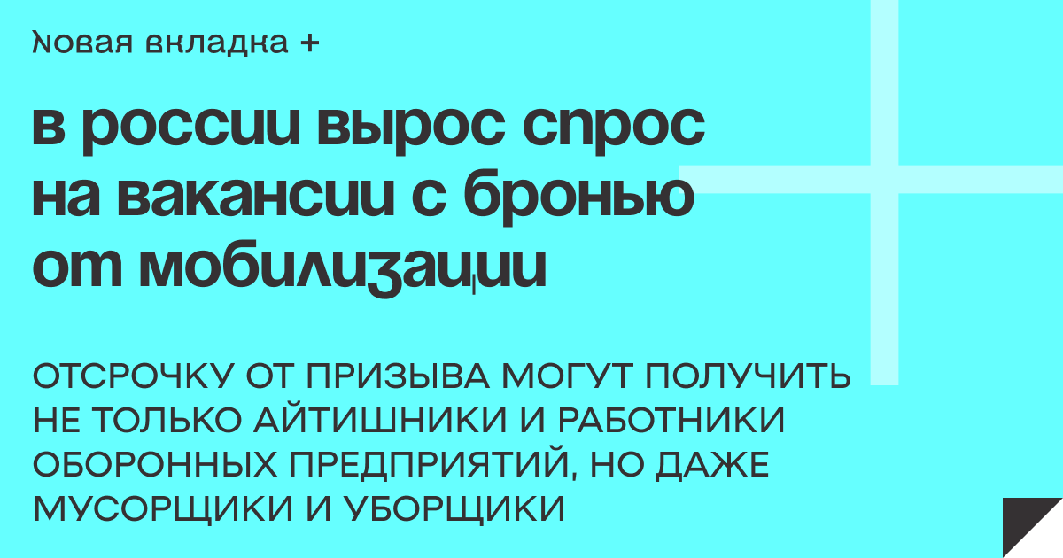 Водителя мусоровоза ищет компания «ЭкоЛайф в Химках». Работодатель предлагает зарплату до 200 тысяч рублей и бронь от мобилизации. Пекарня SPAR из Нижнего Новгорода в период мобилизации обещает бронь пекарям хлеба.