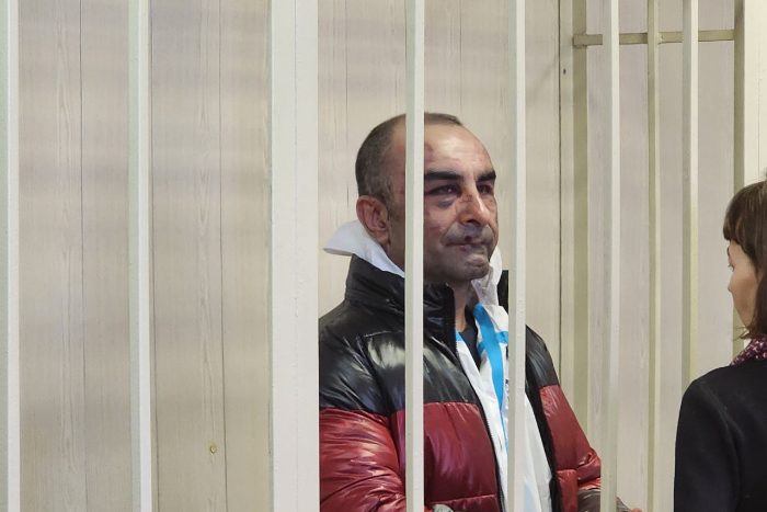 На фотографиях пресс-службы судов Петербурга видно, что лицо Хачикяна в синяках. По данным следствия, обвиняемый получил их, когда упал во время задержания.