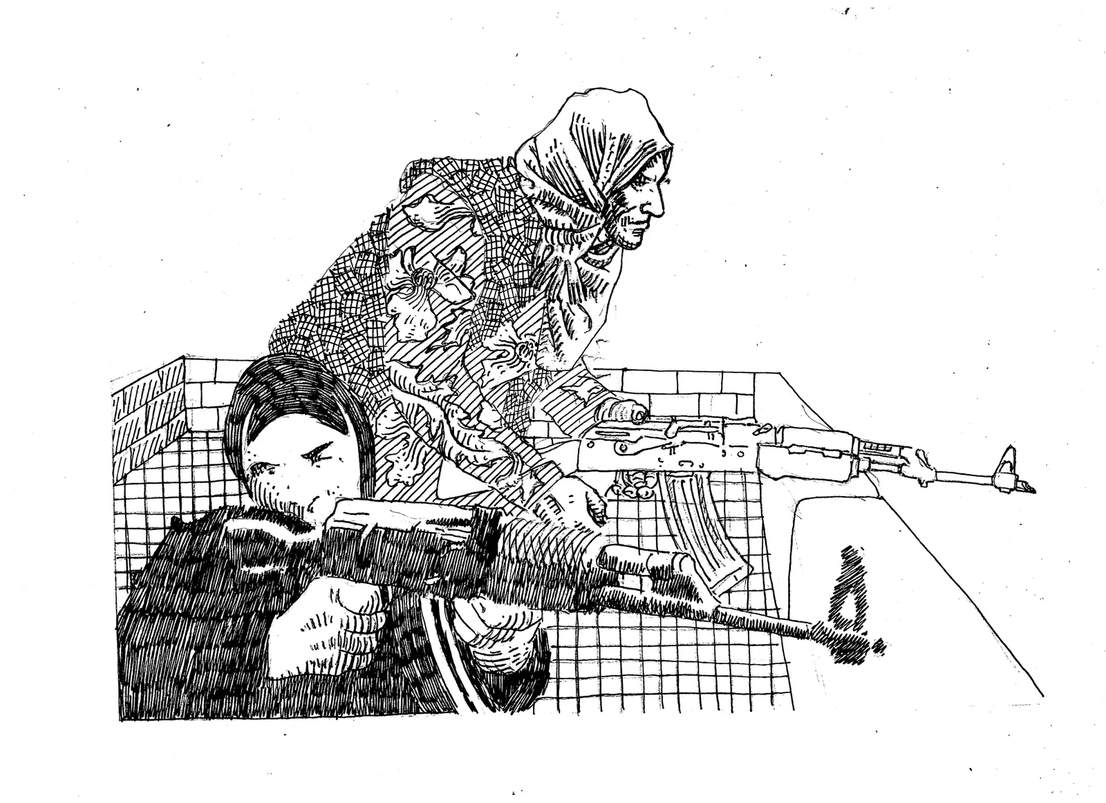 «Самооборона — это радикальная попытка отнять власть у патриархальной милитаристской системы, и женщины должны стать вооруженным авангардом самообороны новой, красивой, самоуправляемой, свободной и справедливой жизни» / Иллюстрация: Линза
