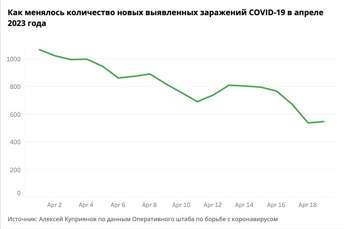 При этом показатели заражаемости коронавирусом в Петербурге падали в течение последней недели: если к утру 13 апреля оперштаб выявил 810 случаев заражения, то к 20 апреля — 589.